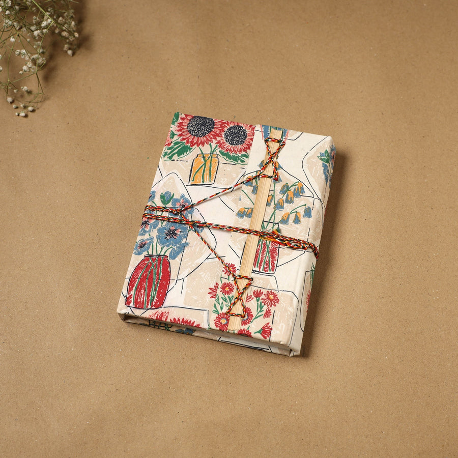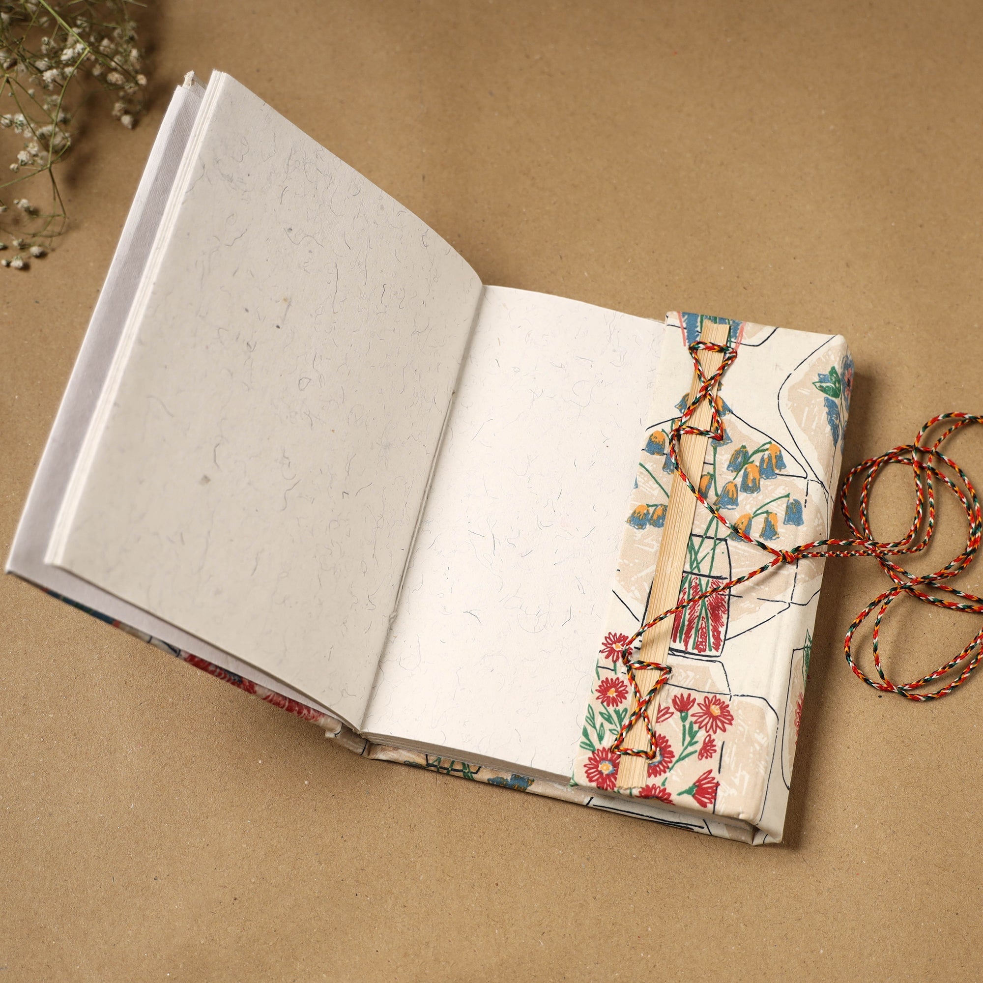 | Material | Beige printed fabric-embellished, hardbound cover notebook with a thread-lock closure and handmade papers. The paper is made from cotton and other natural fibre waste, recycled in an eco-friendly process without the use of chemicals. Crafted by skilled artisans who give careful personal attention to every detail. A creative and practical choice for journaling, planning or capturing daily thoughts. |