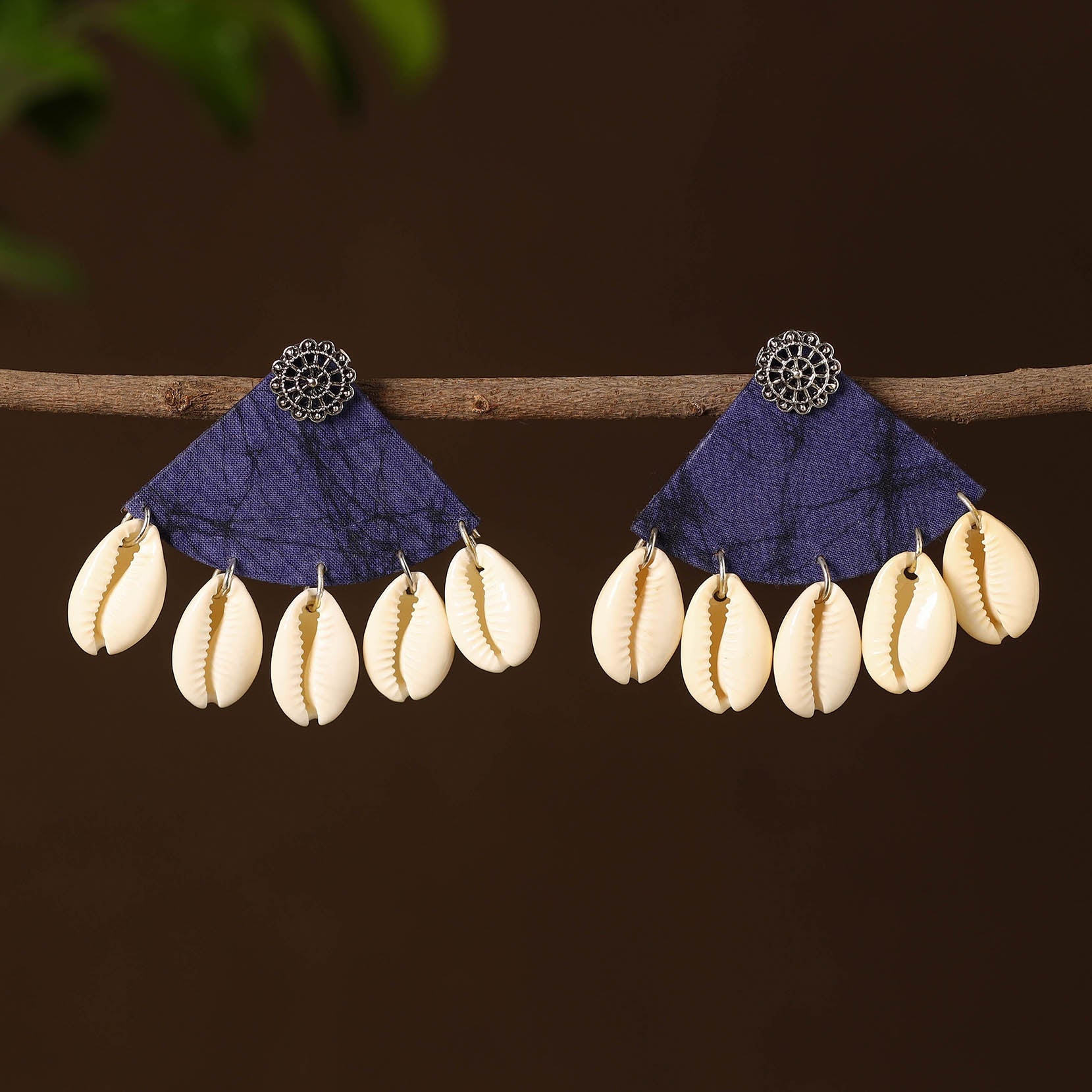 Elevate your look with our blue fabart shell work earrings. Intricately designed with fabric, shell work and german silver, this earrings exudes sophistication. This versatile earrings combine classic design with a modern twist, perfect for both daily and special occasions.
