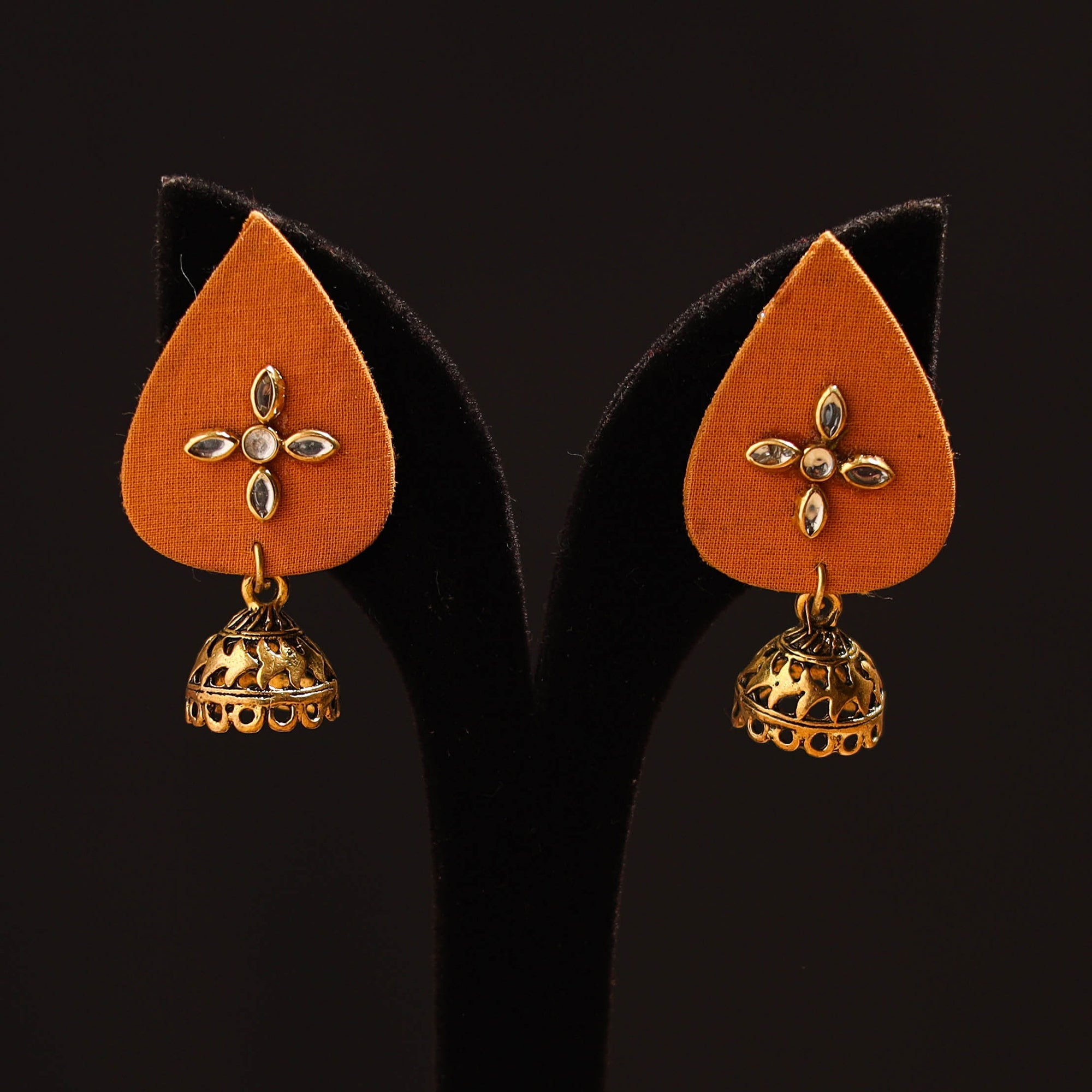 Enhance your look with these beautiful orange handmade gold-tone GS stonework Fabart Jhumki earrings. Inspired by traditional designs, each piece reflects the artistry of skilled artisans. Lightweight and versatile, they are perfect for festive occasions or everyday elegance.