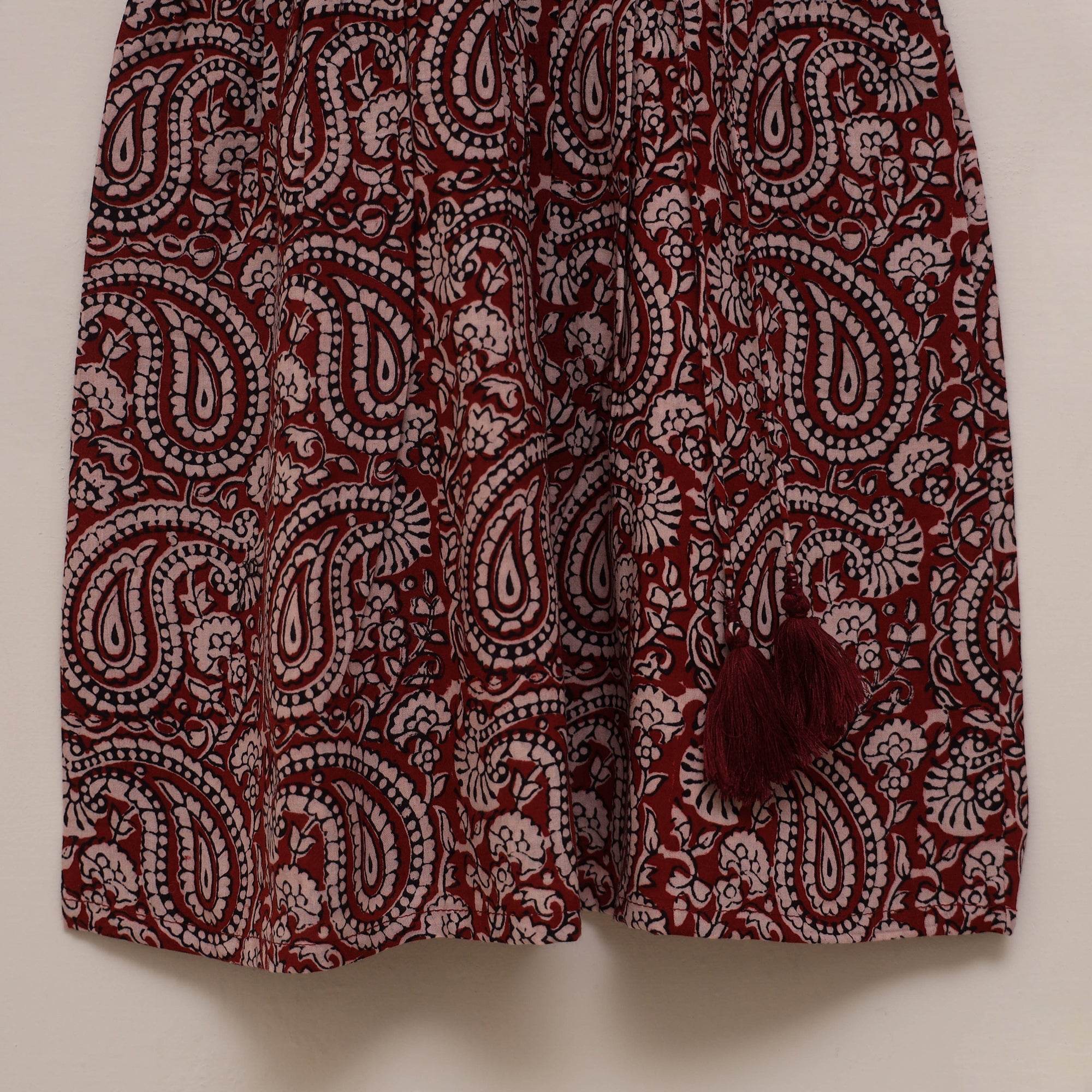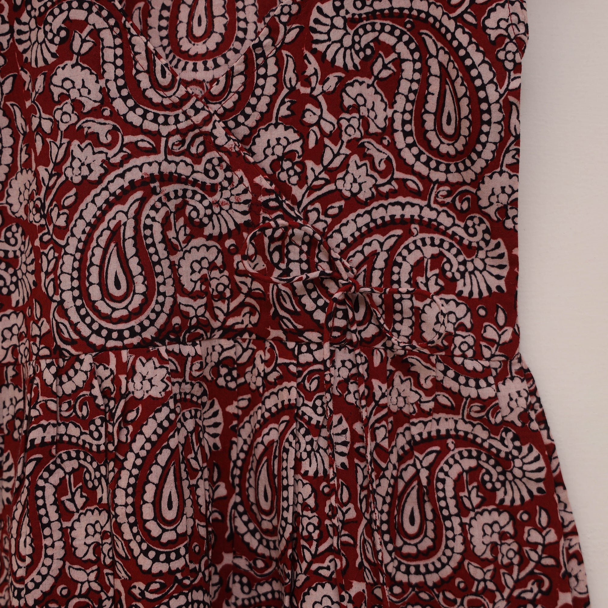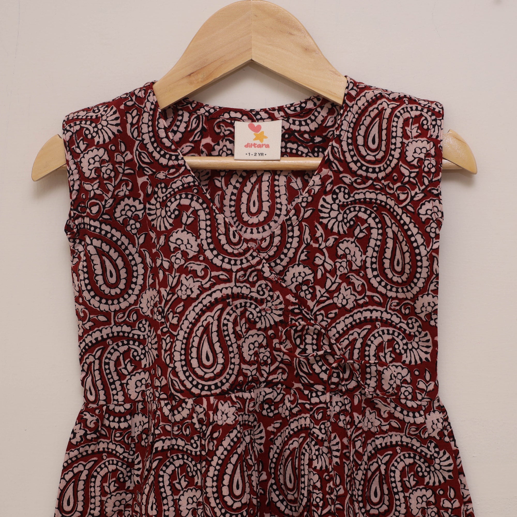 Baby girls dress in bagh prints, designed with angrakha-style front and dori detailing. Made from 100% pure cotton using bagh hand block printing technique. It is comfortable to wear and gentle on the skin. A lovely choice for your little one, this dress adds charm to her everyday look.
