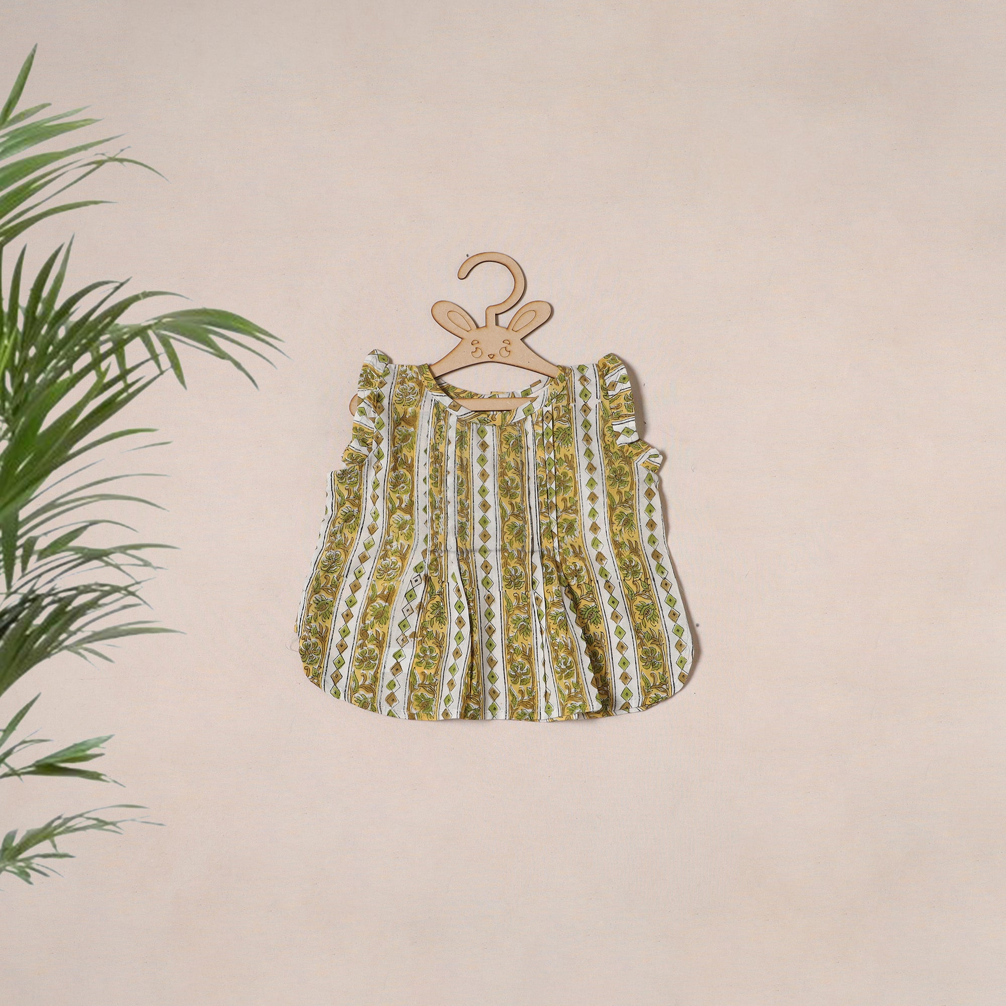 Baby girls top features a round neckline and a relaxed fit, paired with matching shorts with an elasticated waistband. Made from 100% pure cotton using the sanganeri hand block printing technique, known for its floral patterns it is comfortable to wear and gentle on the skin. A lovely choice for your little one, this set adds charm to her everyday look.