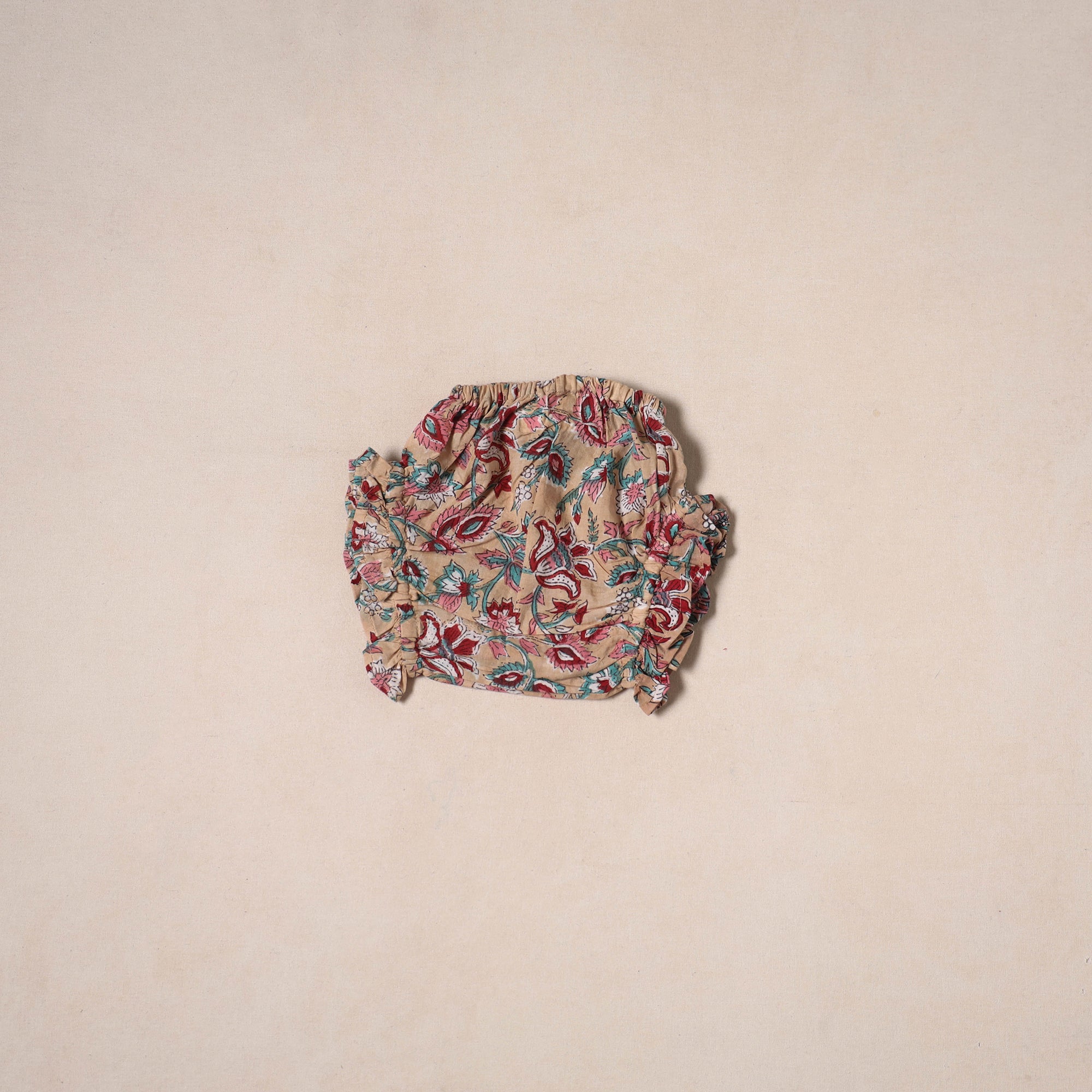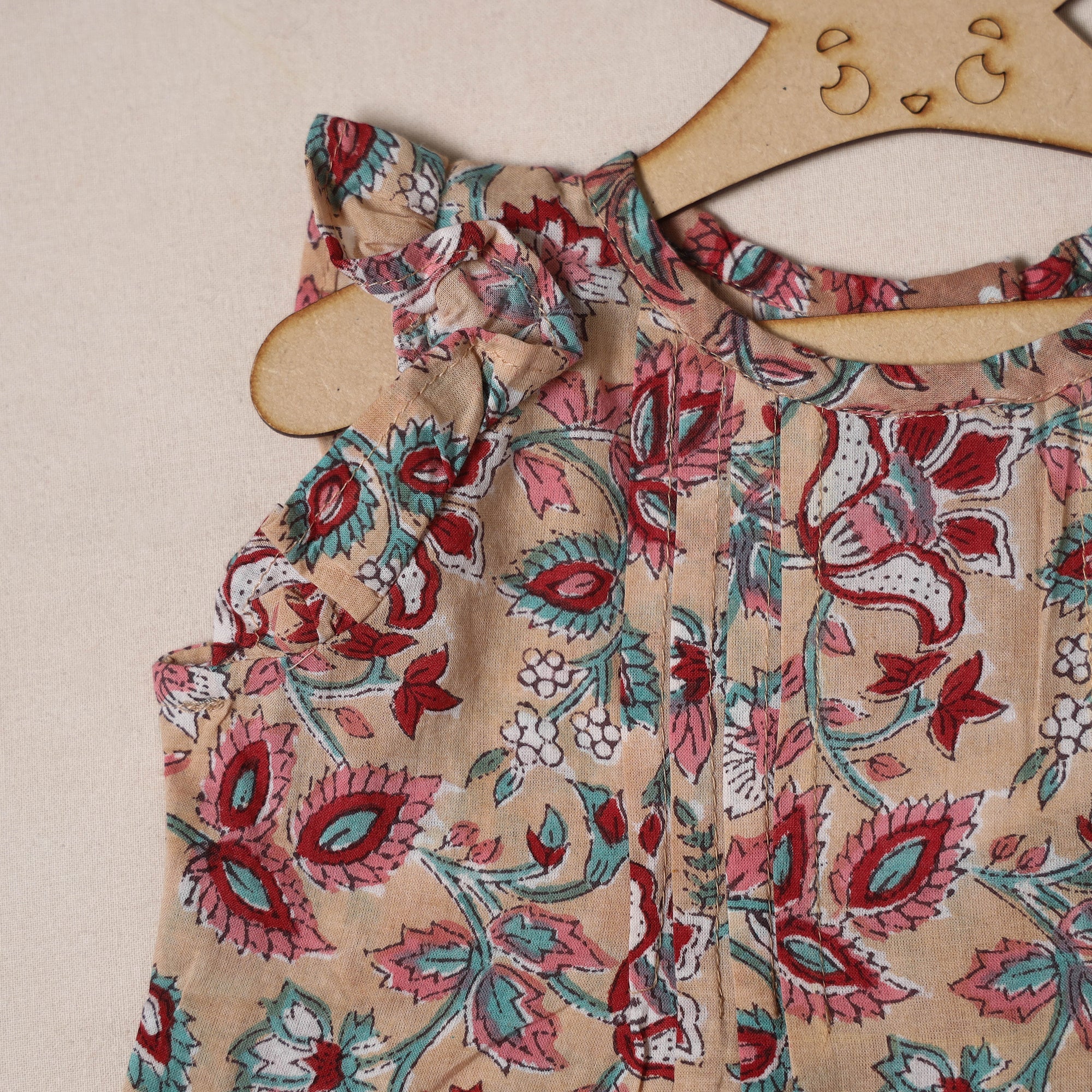 Brown baby girls top features a round neckline and a relaxed fit, paired with matching shorts with an elasticated waistband. Made from 100% pure cotton using the sanganeri hand block printing technique, known for its floral patterns it is comfortable to wear and gentle on the skin. A lovely choice for your little one, this set adds charm to her everyday look.