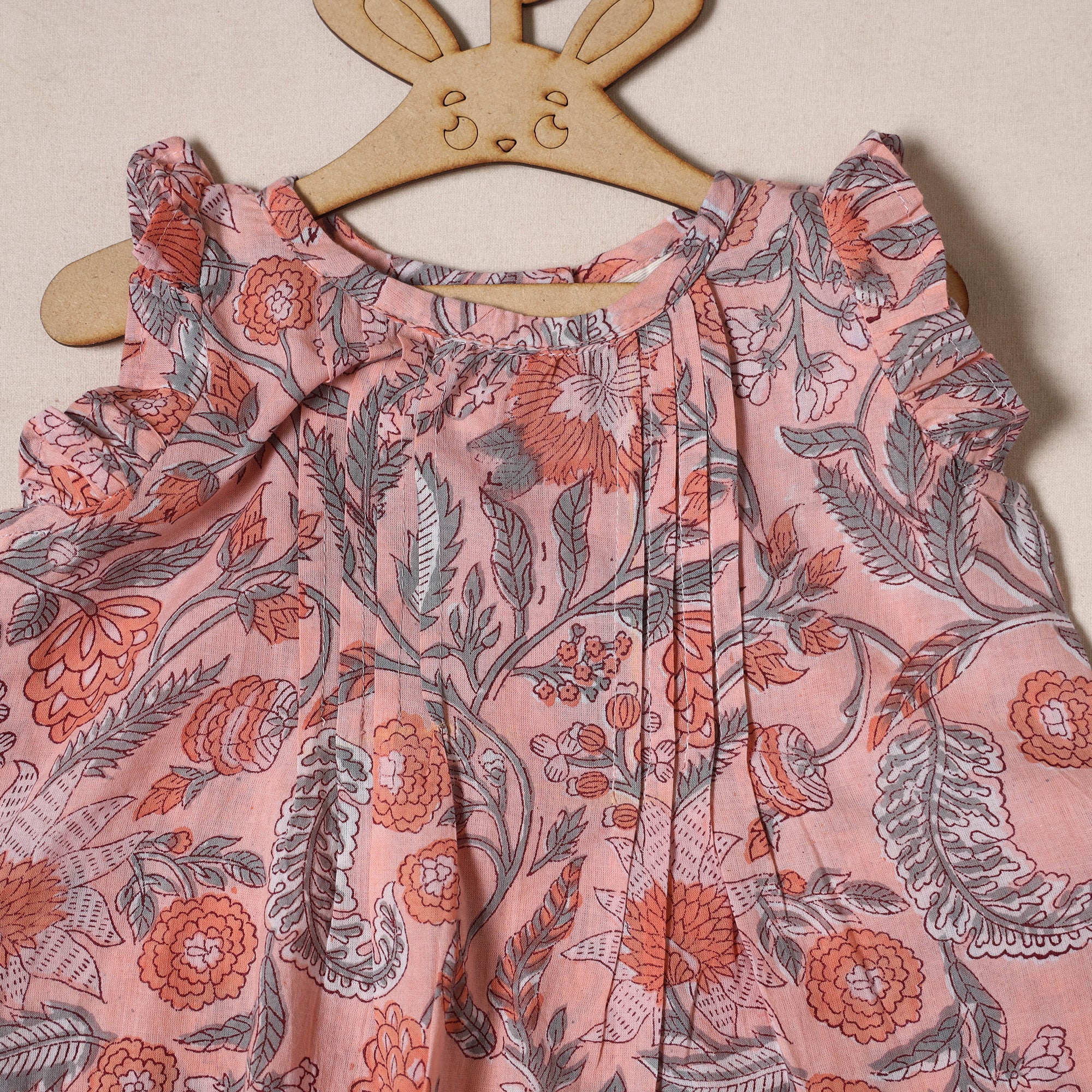 | Material | Pink baby girls top features a round neckline and a relaxed fit, paired with matching shorts with an elasticated waistband. Made from 100% pure cotton using the sanganeri hand block printing technique, known for its floral patterns it is comfortable to wear and gentle on the skin. A lovely choice for your little one, this set adds charm to her everyday look. |