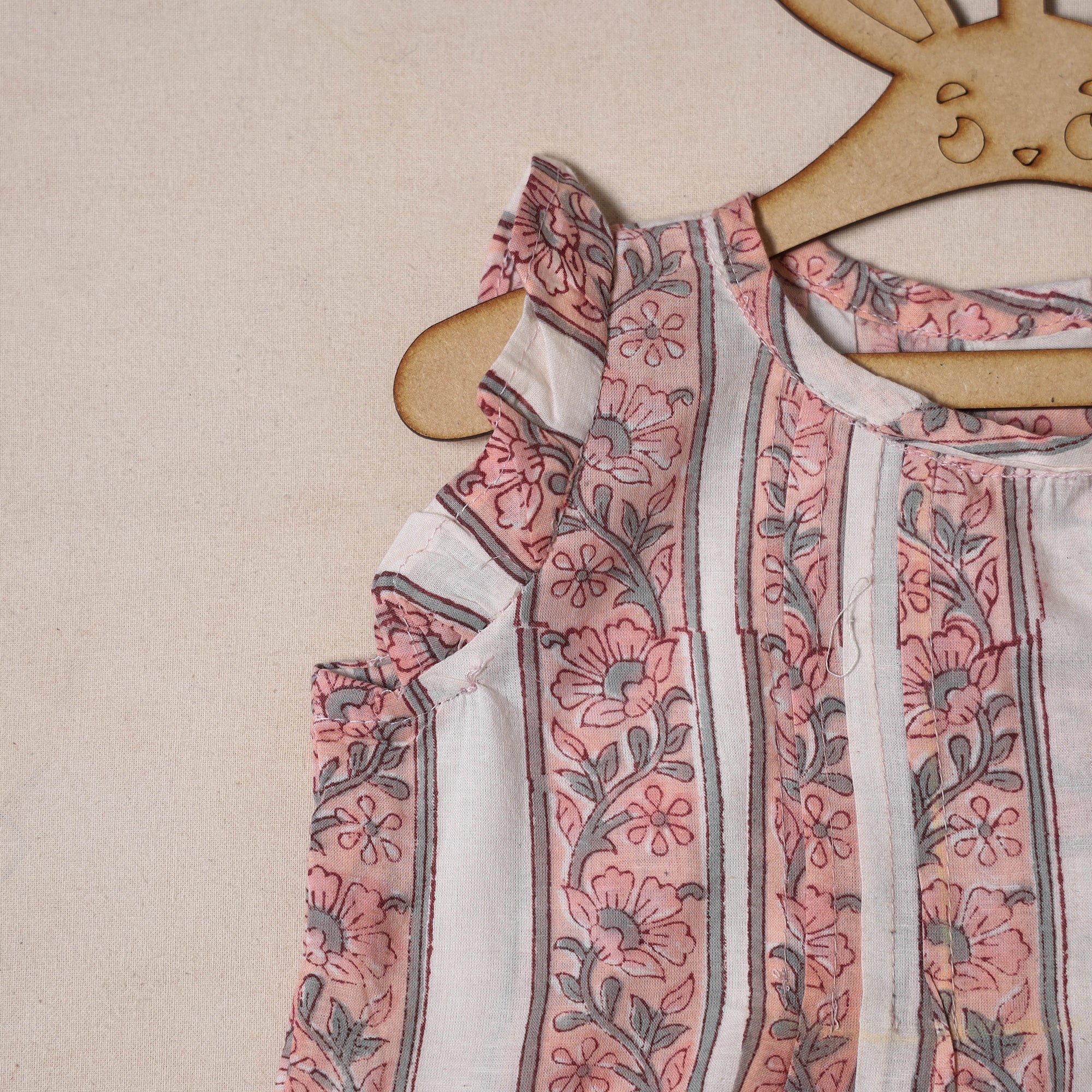 baby girls top features a round neckline and a relaxed fit, paired with matching shorts with an elasticated waistband. Made from 100% pure cotton using the sanganeri hand block printing technique, known for its floral patterns it is comfortable to wear and gentle on the skin. A lovely choice for your little one, this set adds charm to her everyday look.