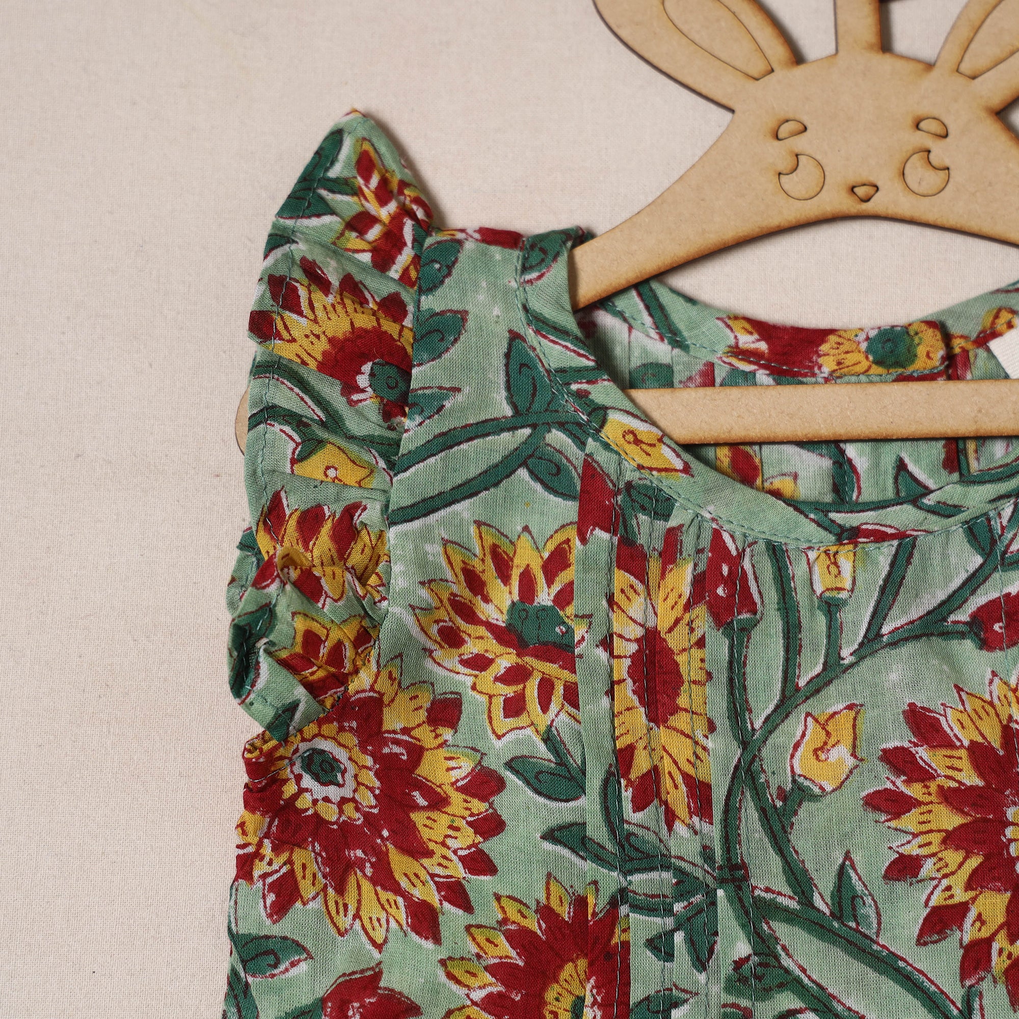 Baby girls top features a round neckline and a relaxed fit, paired with matching shorts with an elasticated waistband. Made from 100% pure cotton using the sanganeri hand block printing technique, known for its floral patterns it is comfortable to wear and gentle on the skin. A lovely choice for your little one, this set adds charm to her everyday look.