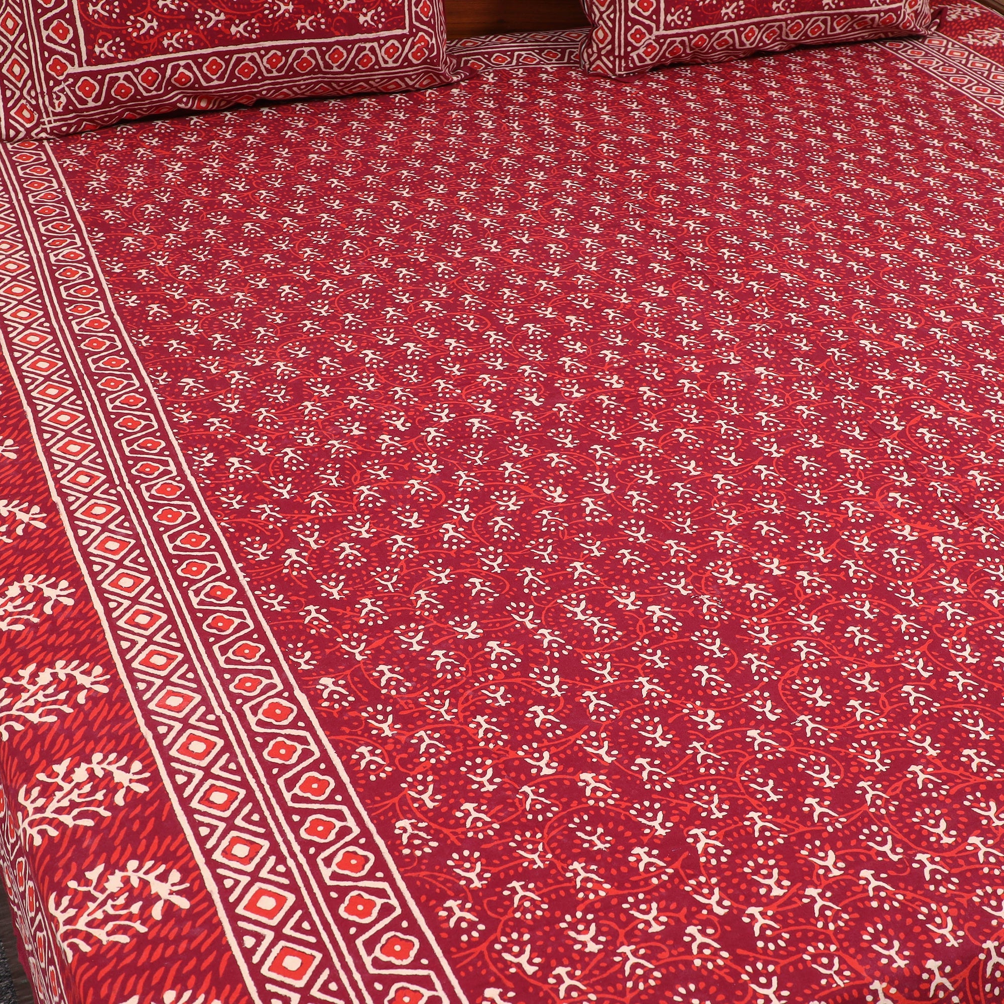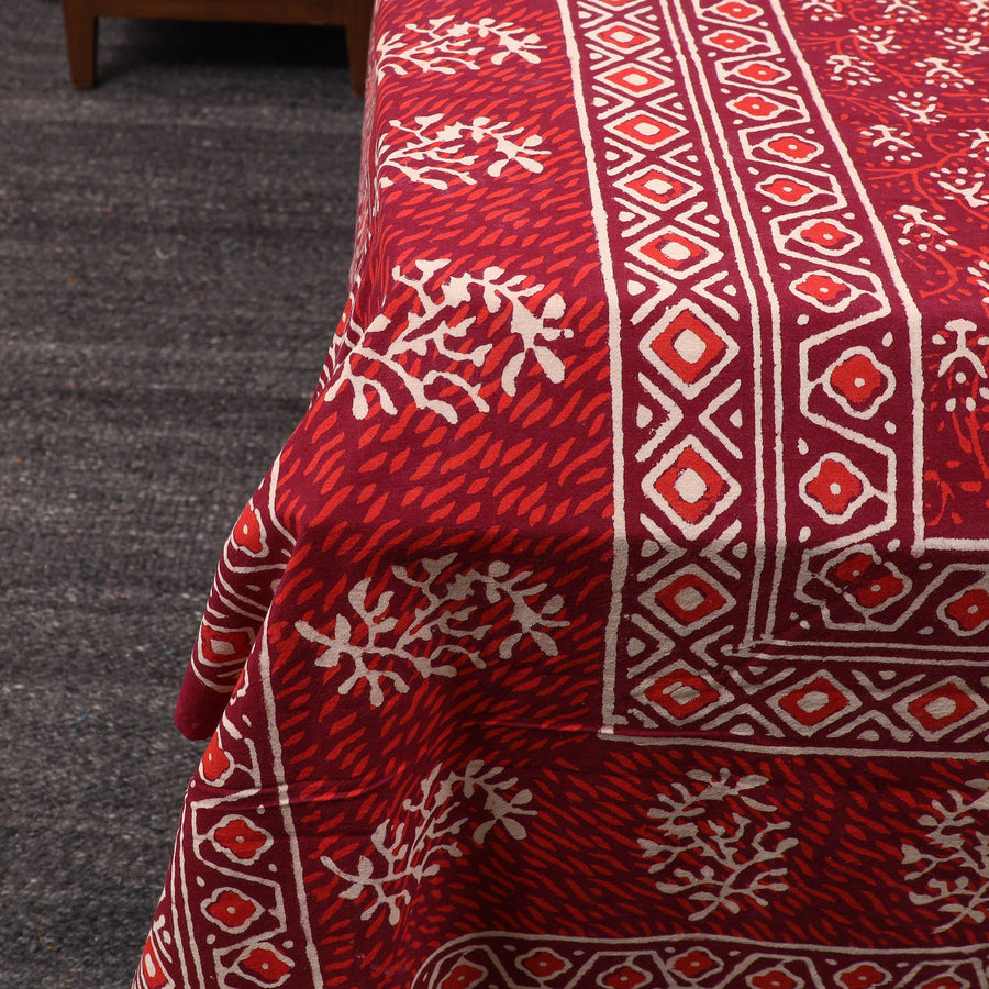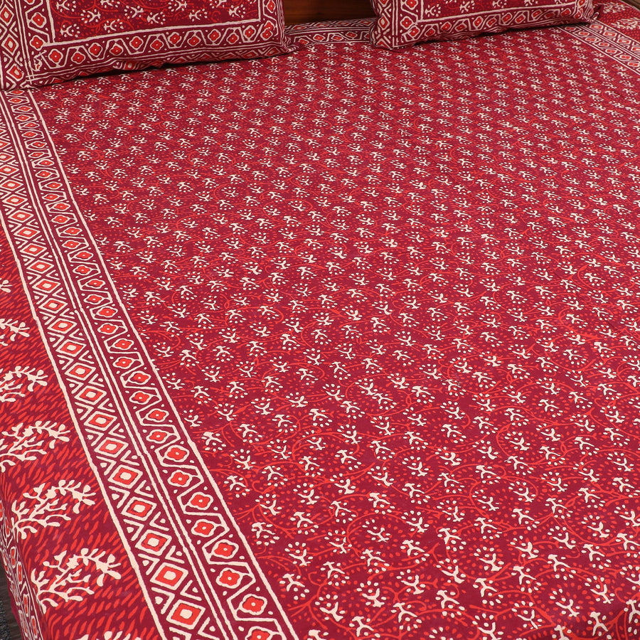 This red pure cotton double bagru print bed cover set, crafted by skilled artisans from Rajasthan. The traditional bagru block printing technique gives this double bed cover its unique charm and rich indigo hues, adding a touch of elegance to your space.