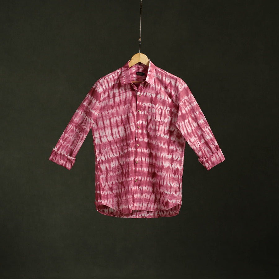 | Material | Pink pure cotton men's shibori shirt is made using a traditional hand tie-dye technique that has been practiced for thousands of years. In this process, parts of the fabric are carefully tied before dyeing to create unique patterns. The soft and breathable cotton ensures all-day comfort. The shirt features a regular collar and full sleeves, while wooden buttons add a touch of natural charm. A patch pocket on the front offers added convenience. It is suitable for daily outings, casual meet-ups and relaxed weekend occasions. |