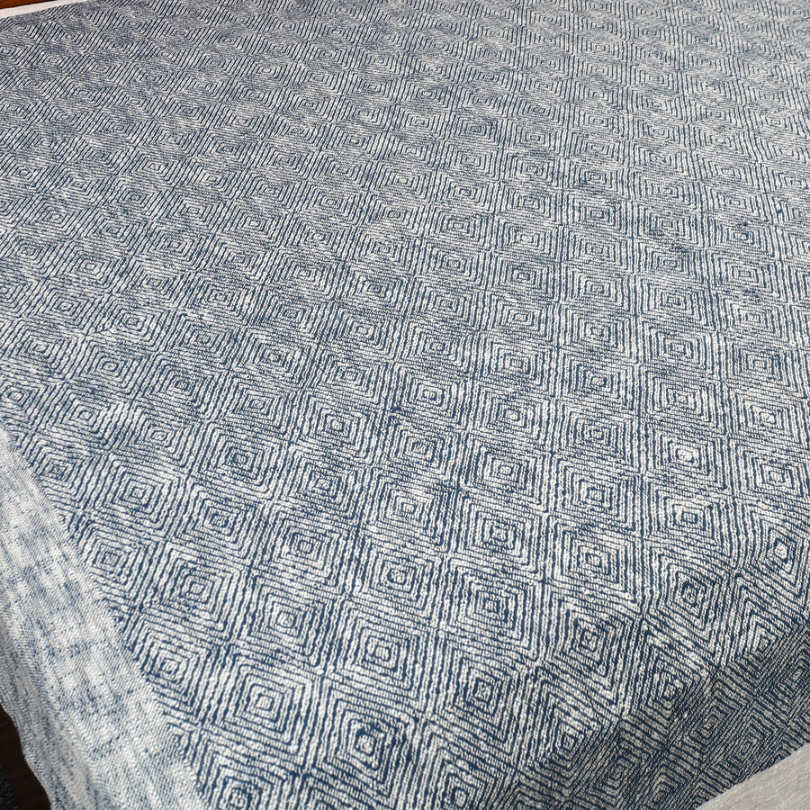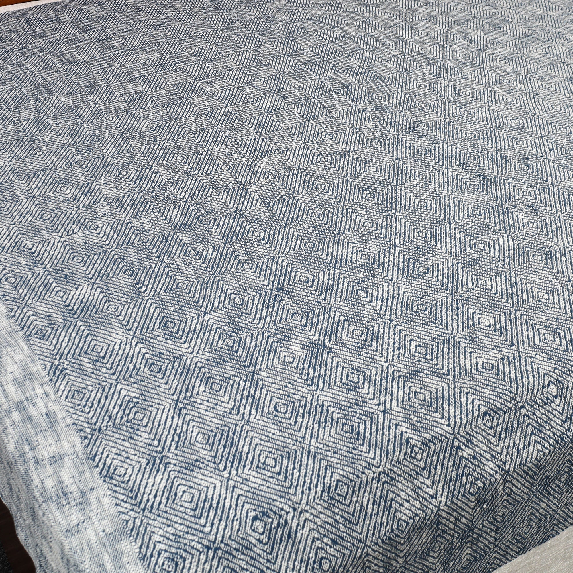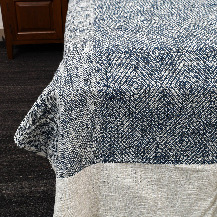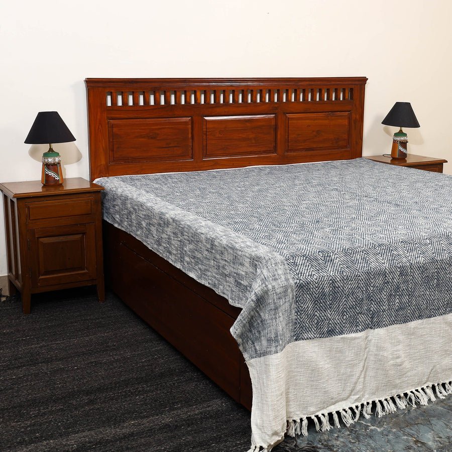 Pure handloom blue cotton double bed cover from Bijnor region of Uttar Pradesh is the perfect addition to your bedroom. Handloom weaving with care offers a soft, cosy feel while adding a touch of traditional elegance to your space. The timeless design and cotton fabric ensure comfort and durability.