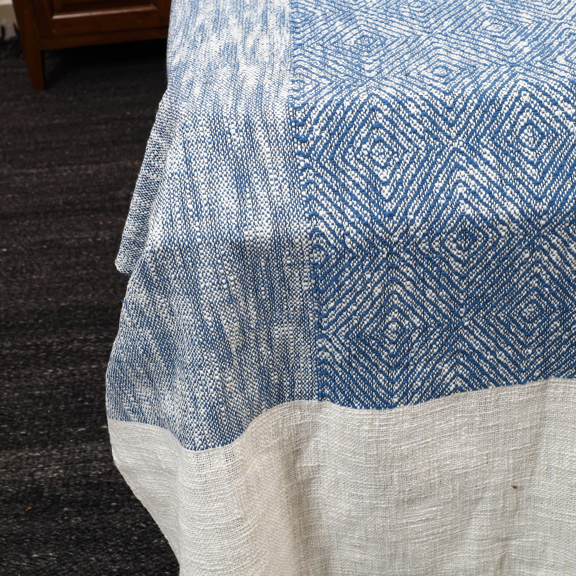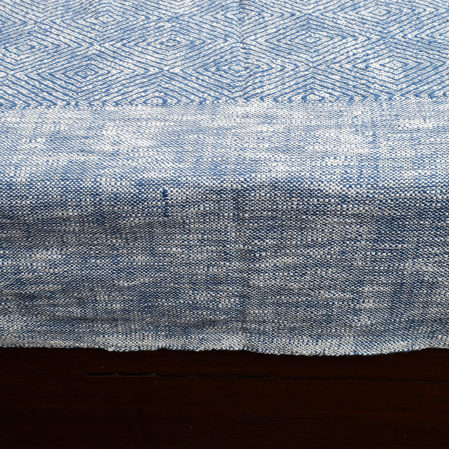 Pure handloom cotton blue double bed cover from Bijnor region of Uttar Pradesh is the perfect addition to your bedroom. Handloom weaving with care offers a soft, cosy feel while adding a touch of traditional elegance to your space. The timeless design and cotton fabric ensure comfort and durability.