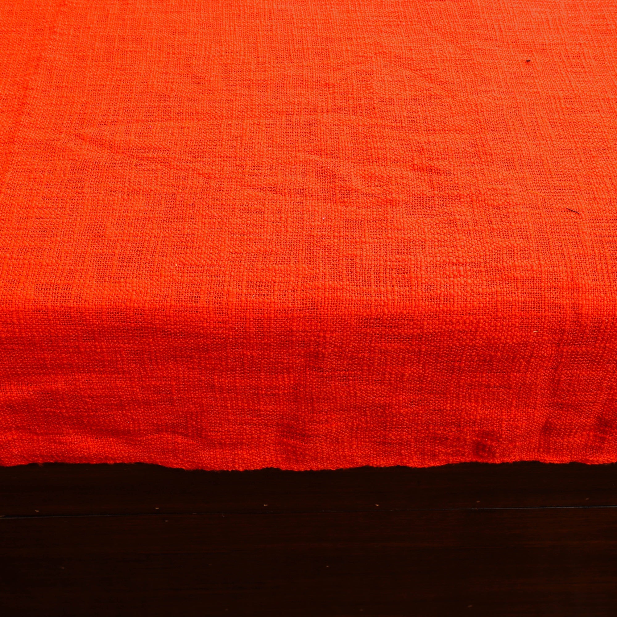 Pure handloom cotton orange double bed cover from Bijnor region of Uttar Pradesh is the perfect addition to your bedroom. Handloom weaving with care offers a soft, cosy feel while adding a touch of traditional elegance to your space. The timeless design and cotton fabric ensure comfort and durability.