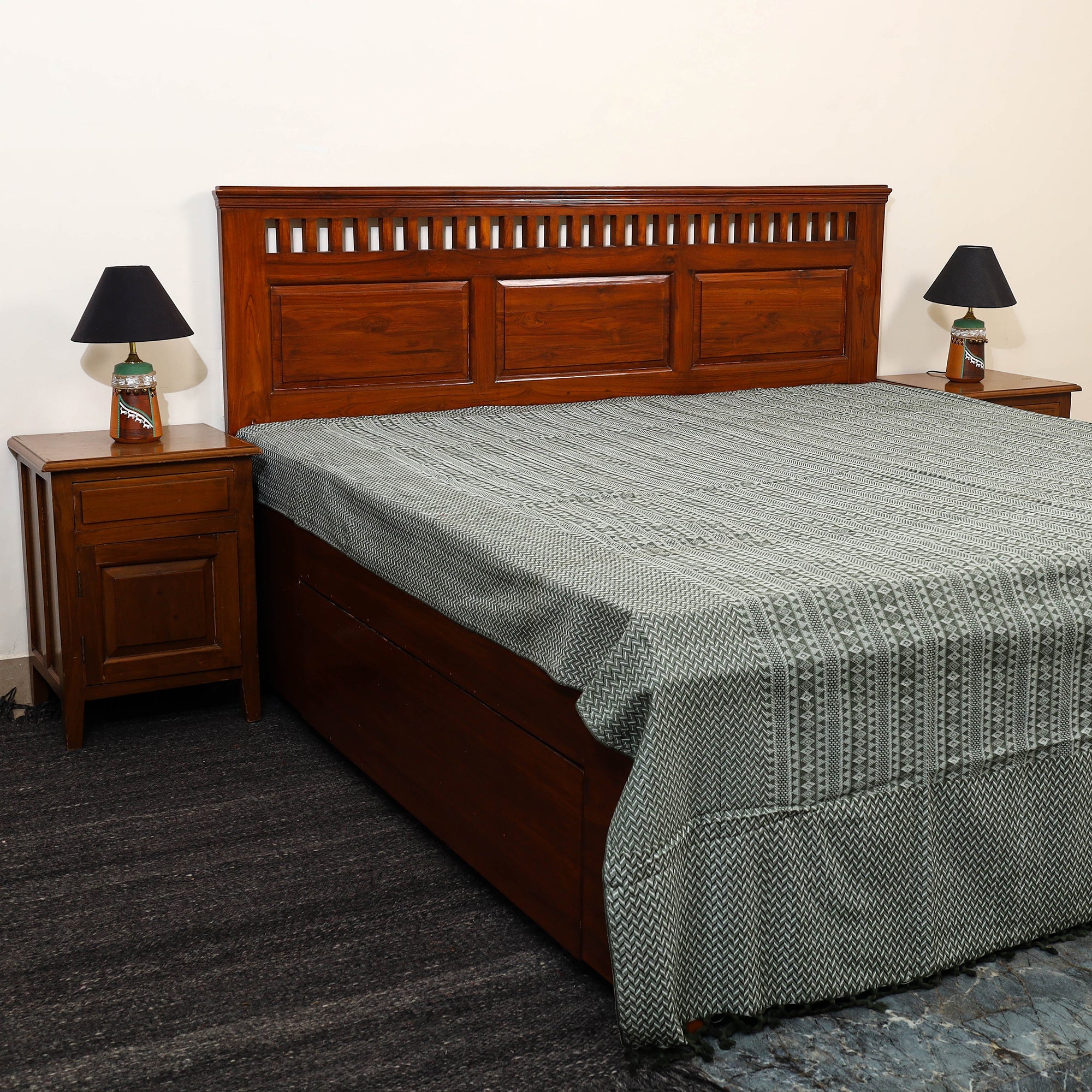Pure handloom cotton grey double bed cover from Bijnor region of Uttar Pradesh is the perfect addition to your bedroom. Handloom weaving with care offers a soft, cosy feel while adding a touch of traditional elegance to your space. The timeless design and cotton fabric ensure comfort and durability.