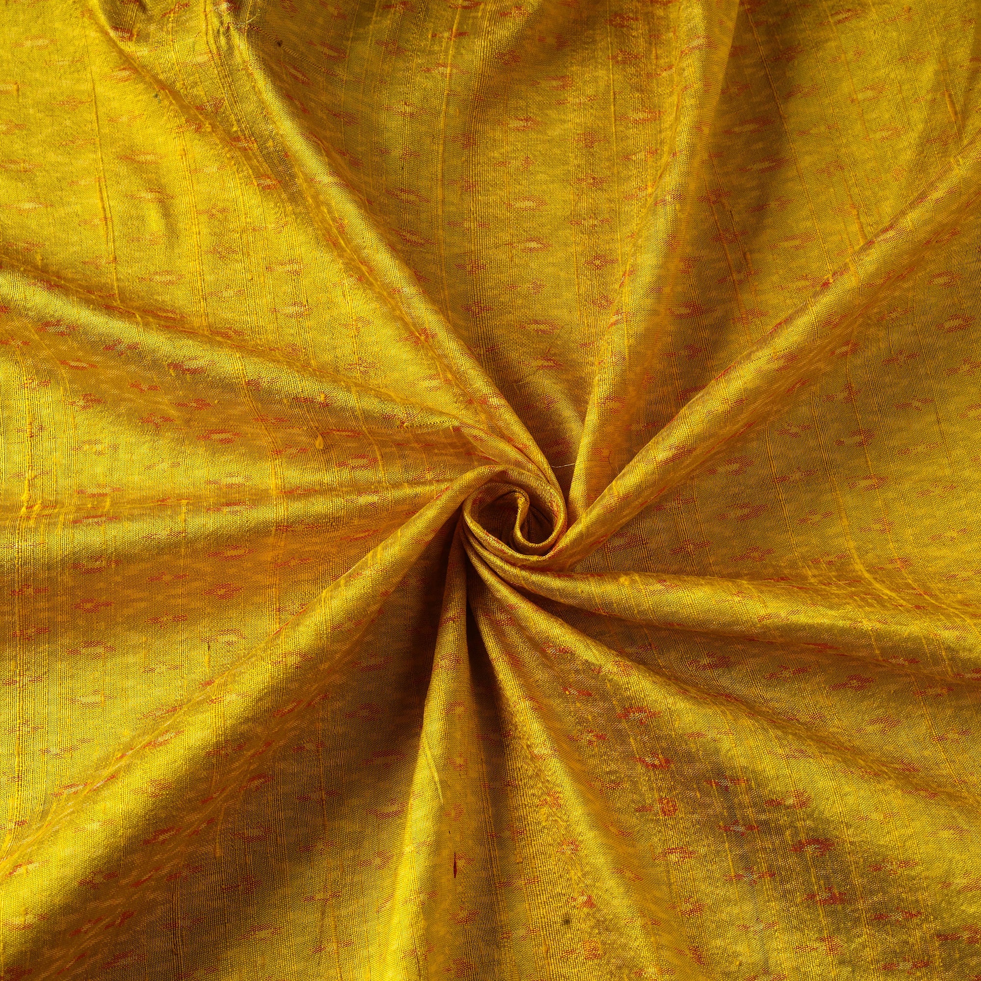 This yellow pure handloom pochampally ikat fabric comes from Telangana, known for its rich weaving traditions. Made using the Ikat technique, the yarns are resist-dyed before weaving to create intricate patterns. Crafted from pure raw silk, it offers a luxurious texture with a natural sheen. Perfect for making sarees, suits, and home decor, this fabric beautifully blends tradition with timeless elegance in every weave.