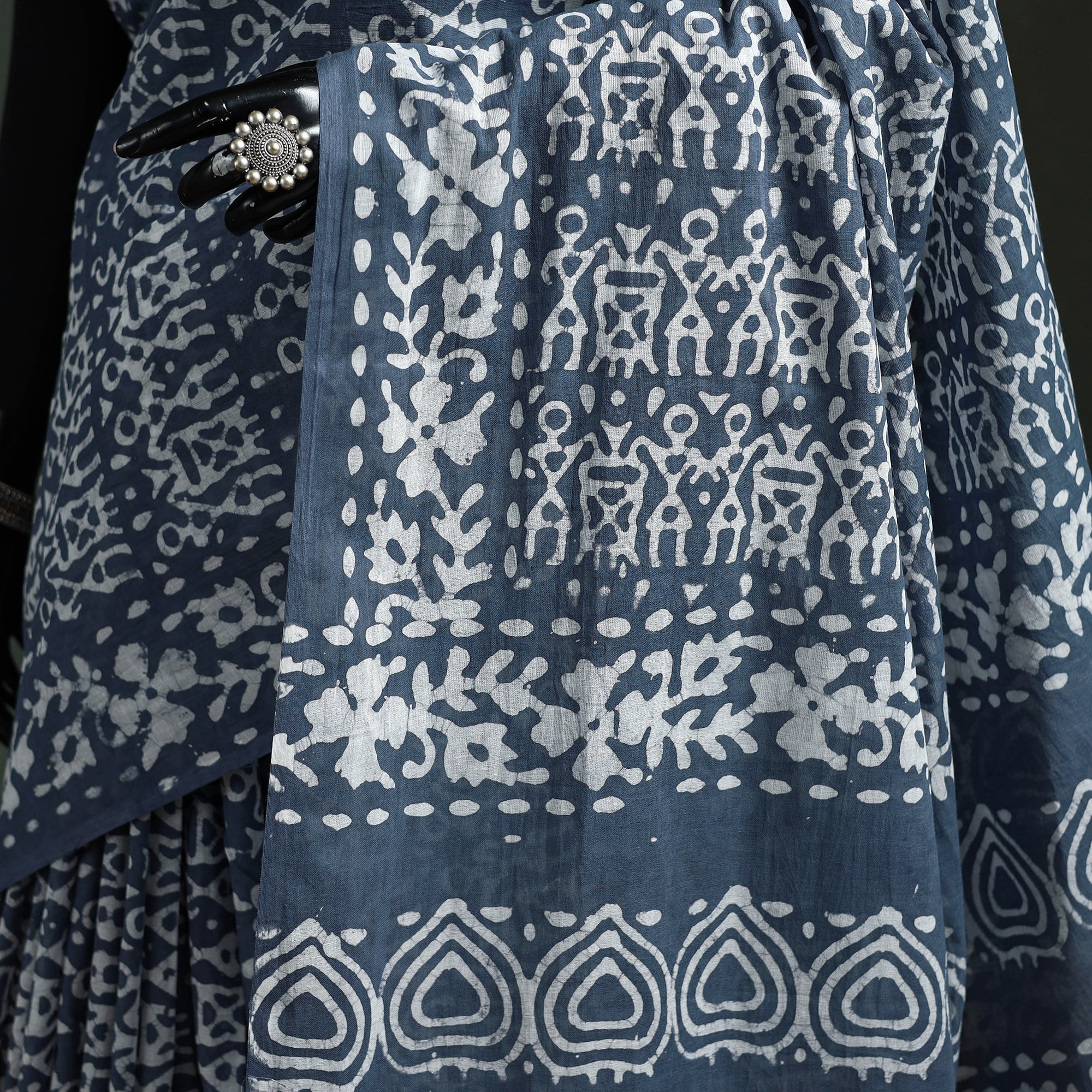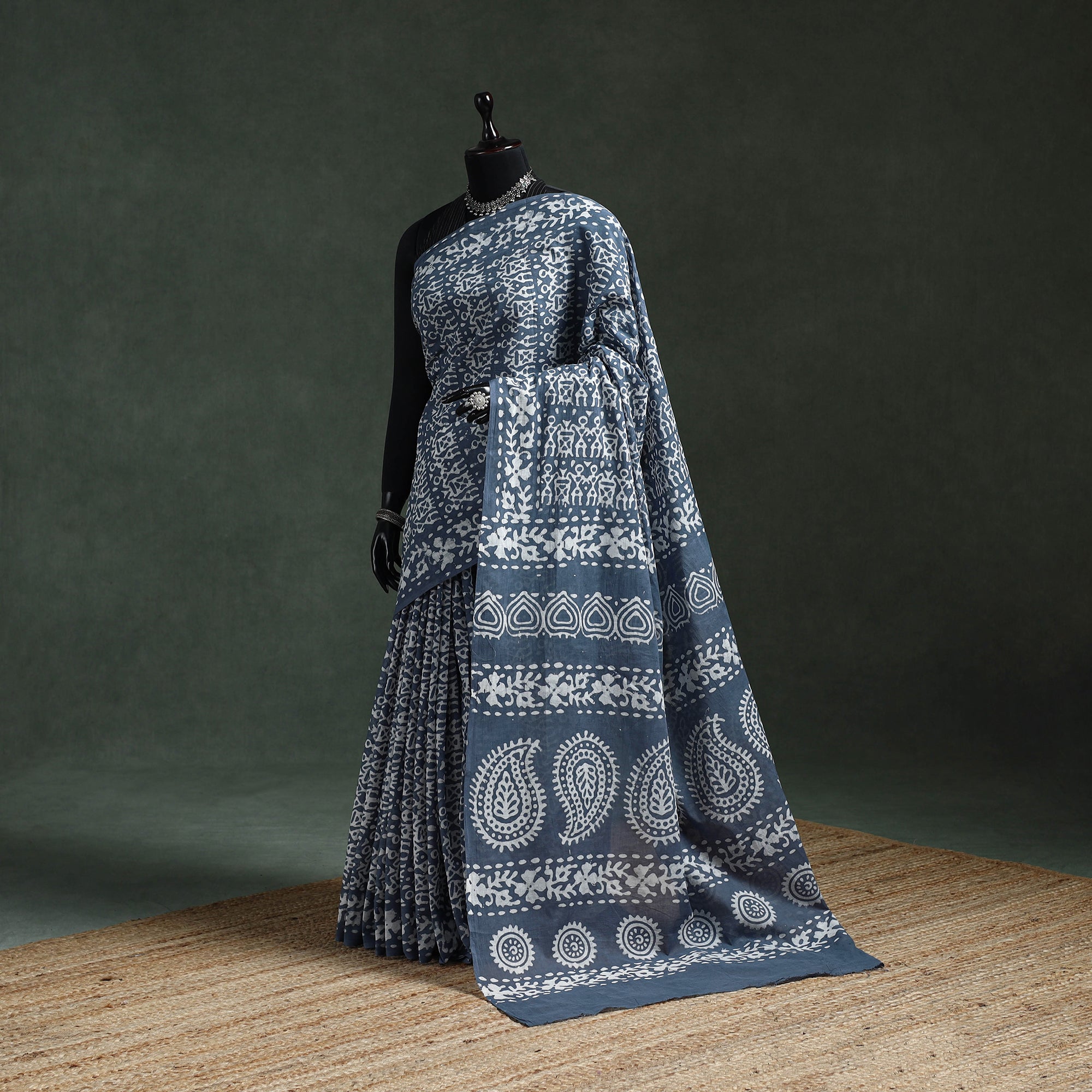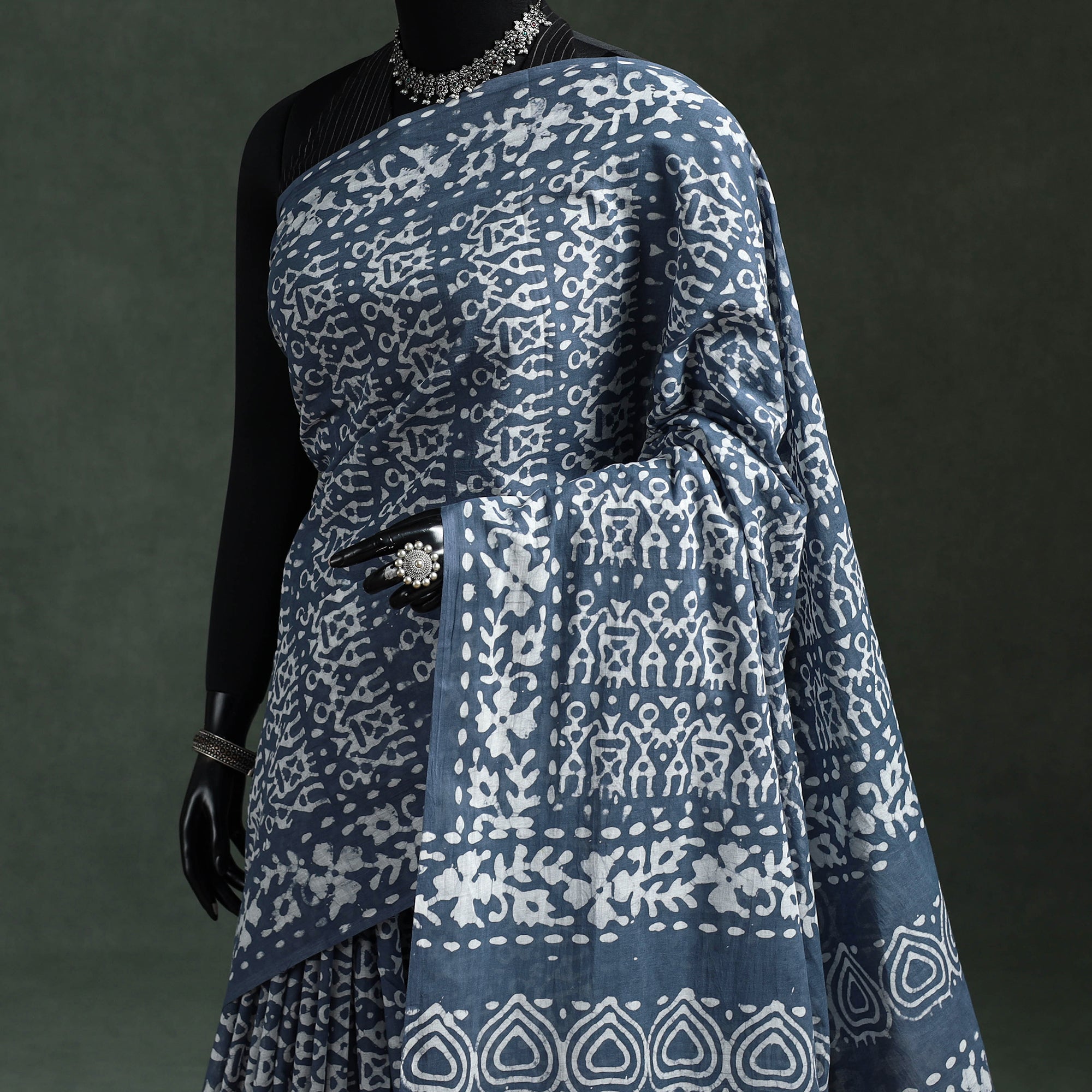 | Material | Blue hand block batik print pure mul cotton saree, crafted by Mohammed Wasim from Ujjain, Madhya Pradesh, is created using the traditional wax-resist dyeing technique, estimated to be around 2,000 years old. Lightweight and breathable, it ensures all-day comfort, making it ideal for special occasions, cultural gatherings or for adding a touch of traditional elegance to everyday wear. |
