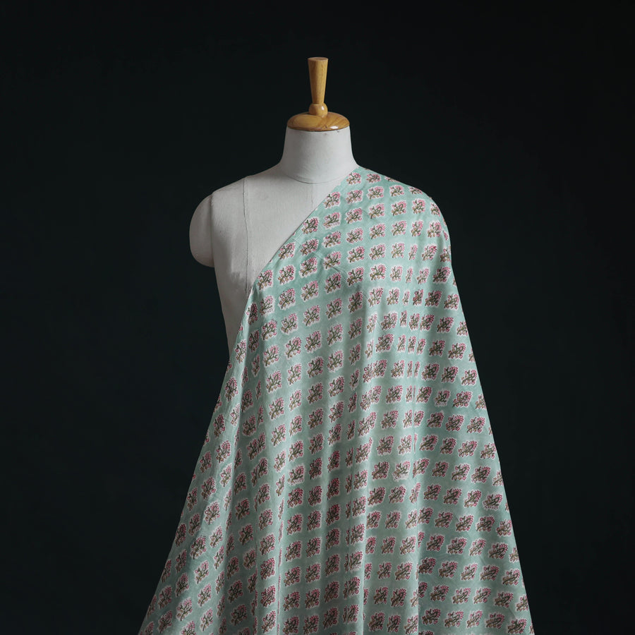 Green - Pure Mul Cotton Hand Block Sanganeri Print Fabric 01