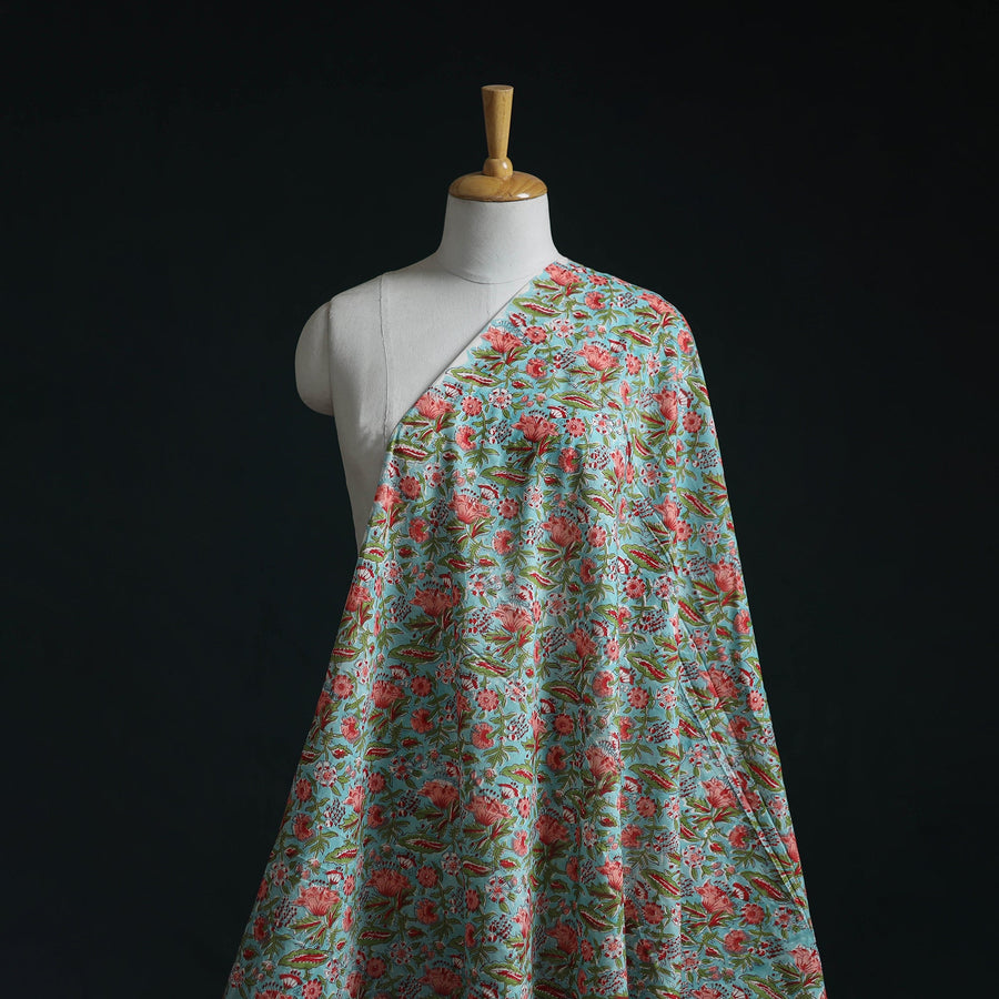 Blue - Hand Block Print Cotton Sanganeri Fabric 22