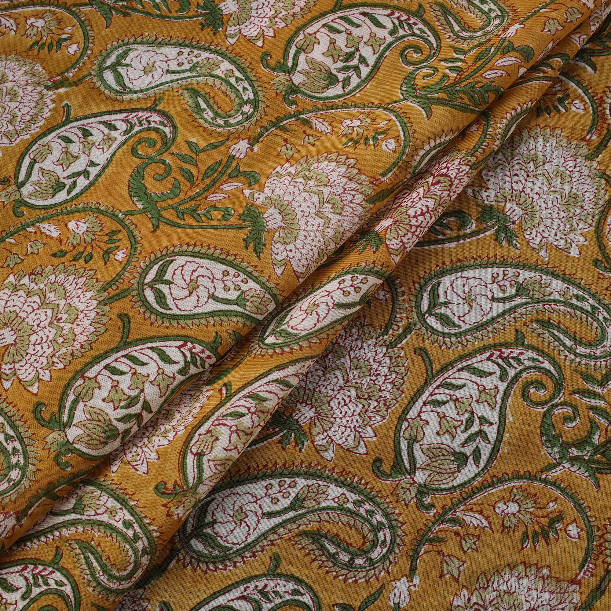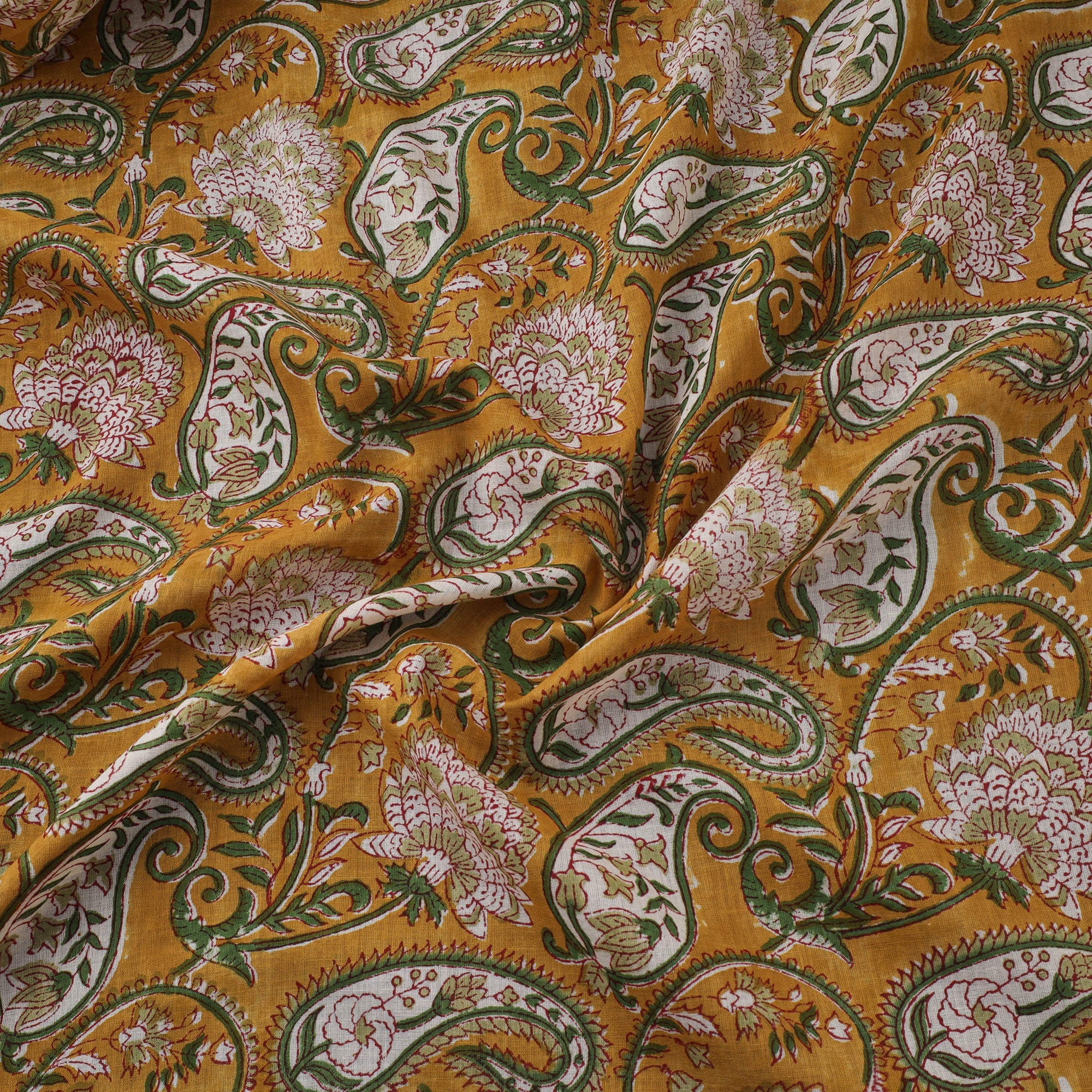 Sanganeri hand block print pure mul cotton fabric from Sanganer, Jaipur, Rajasthan by master artisans. This centuries old printing technique has been practiced for over 500 years and is known for its fine detailing and delicate floral patterns. The designs are printed using traditional hand-carved wooden blocks and bleed-free VAT dyes. The breathable, lightweight mul cotton fabric is ideal for making kurtas, dresses, tunics, as well as home decor items like cushions and curtains.