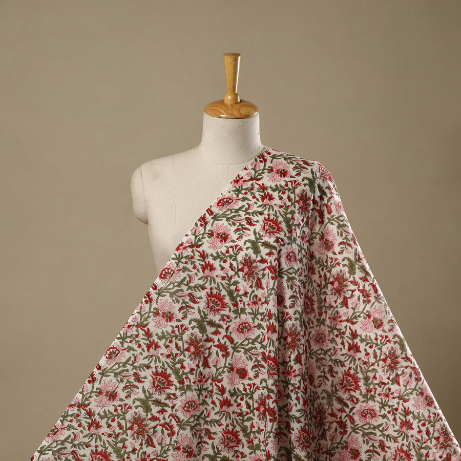 Red - Cotton Hand Block Sanganeri Print Fabric 24