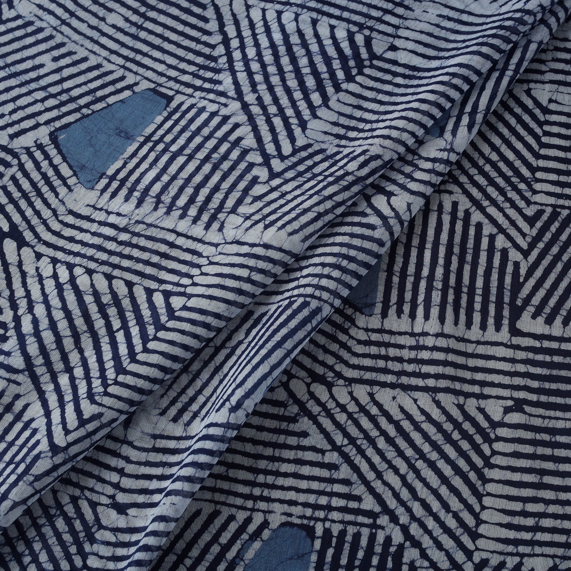 Blue - Pure Mul Cotton Kutch Hand Block Batik Print Fabric 01