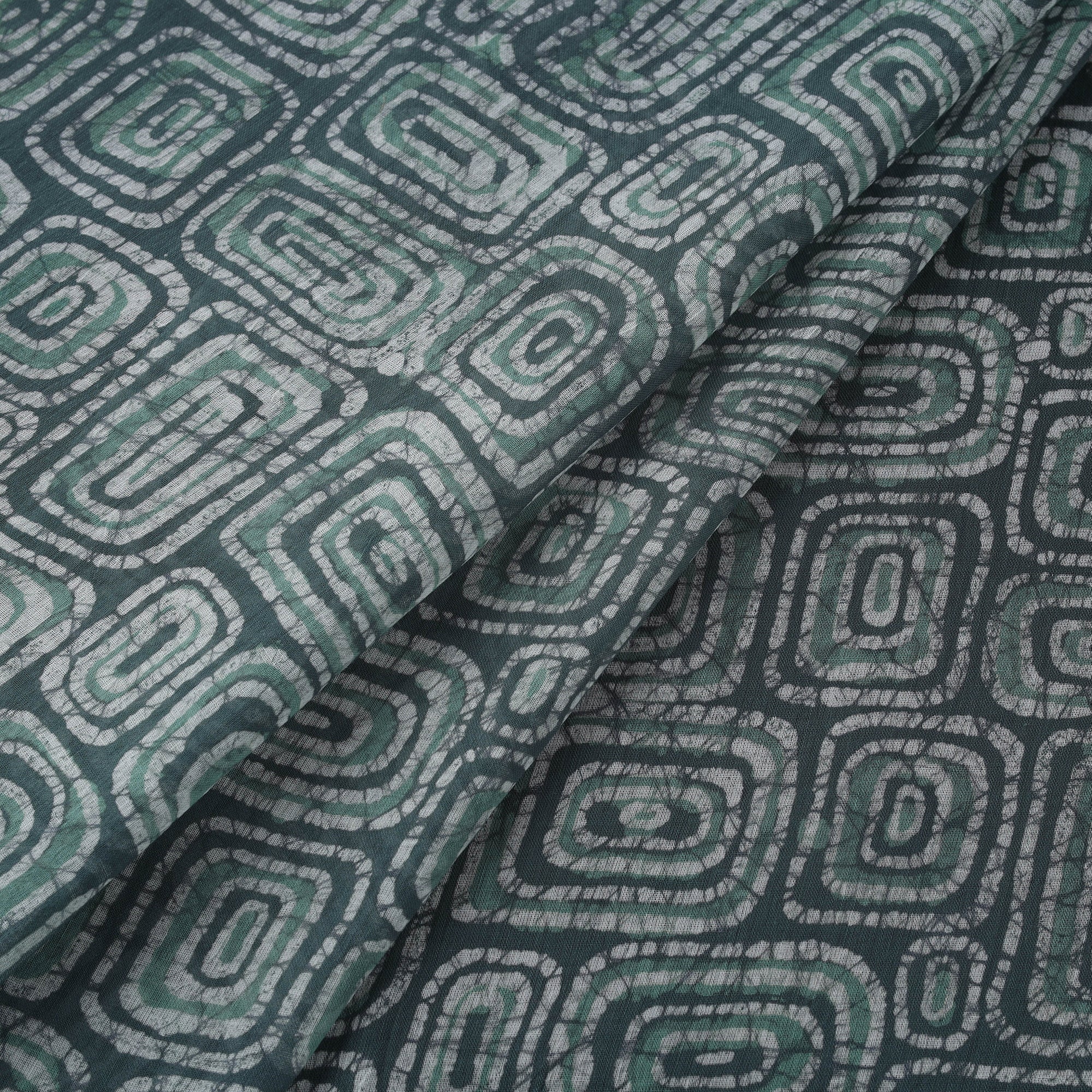 • Green - Pure Mul Cotton Kutch Hand Block Batik Print Fabric 02