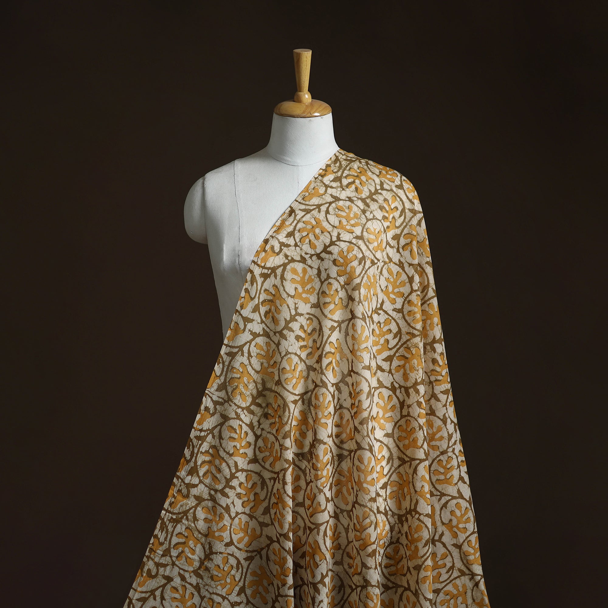 Batik is a very famous technique of wax-resist dyeing applied to whole cloth. The traditional designs and motifs in Indian batik are exceptional. It is a type of resist printing process wherein wax is applied to the fabric in specific areas.