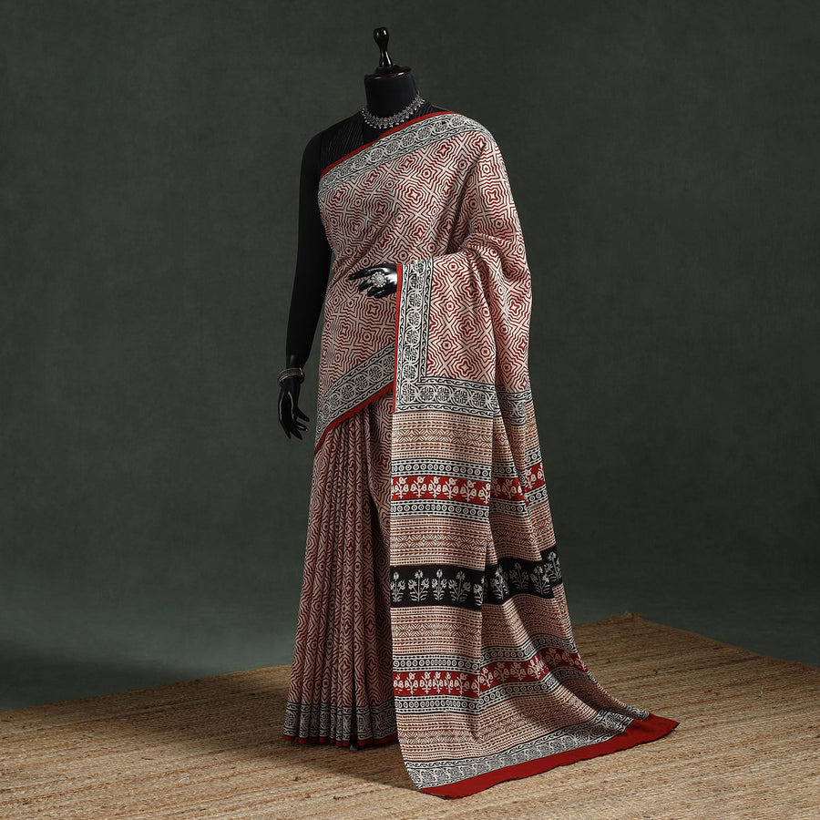 Pure Mul Cotton Natural Dyed Hand Block Dabu Bagru Print Saree 07