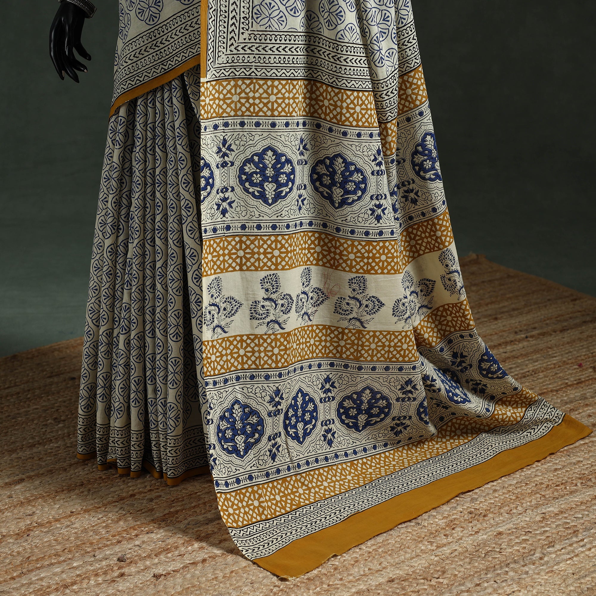 Pure Mul Cotton Natural Dyed Hand Block Dabu Bagru Print Saree 09