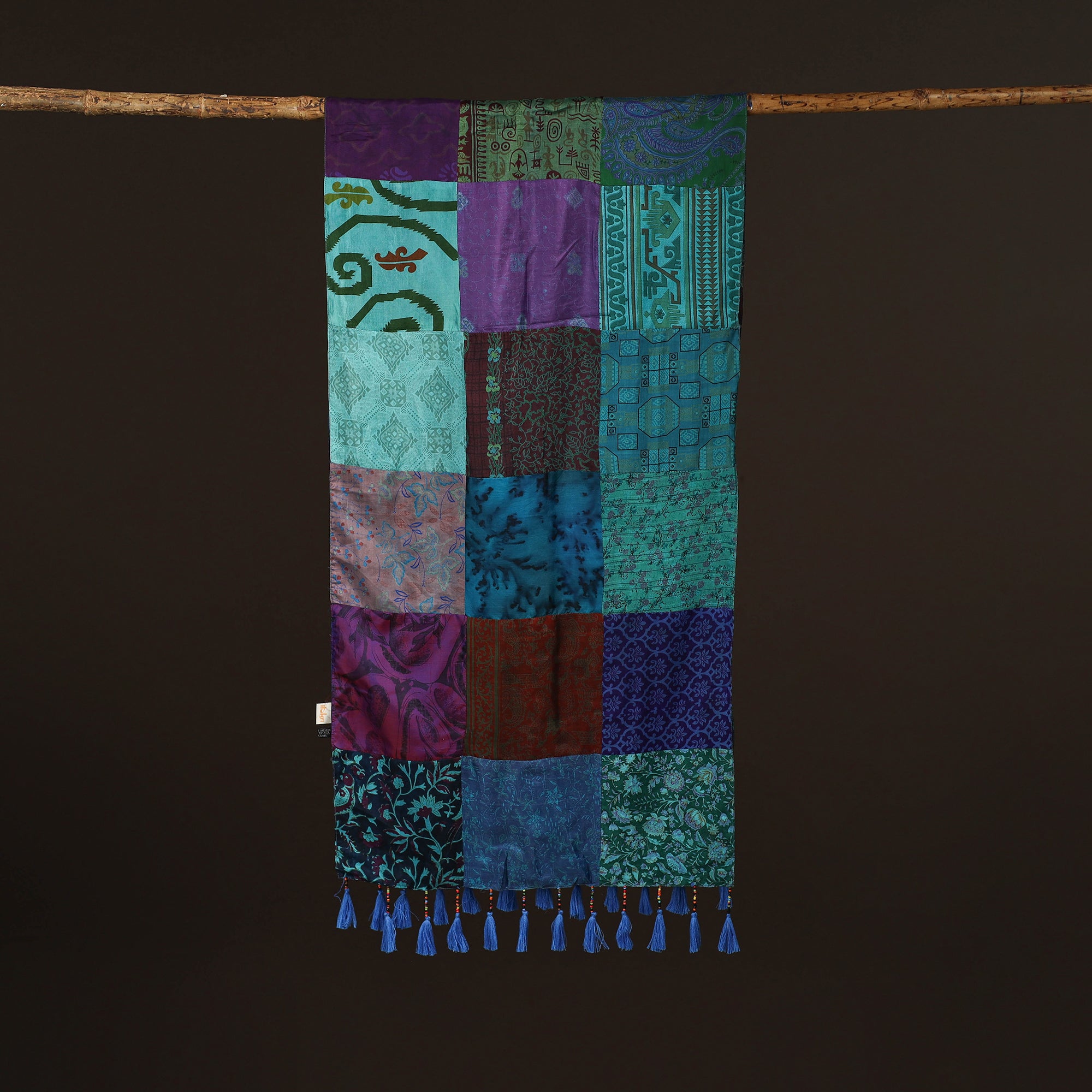 • Pure silk patchwork stole with tassels 10 - handcrafted