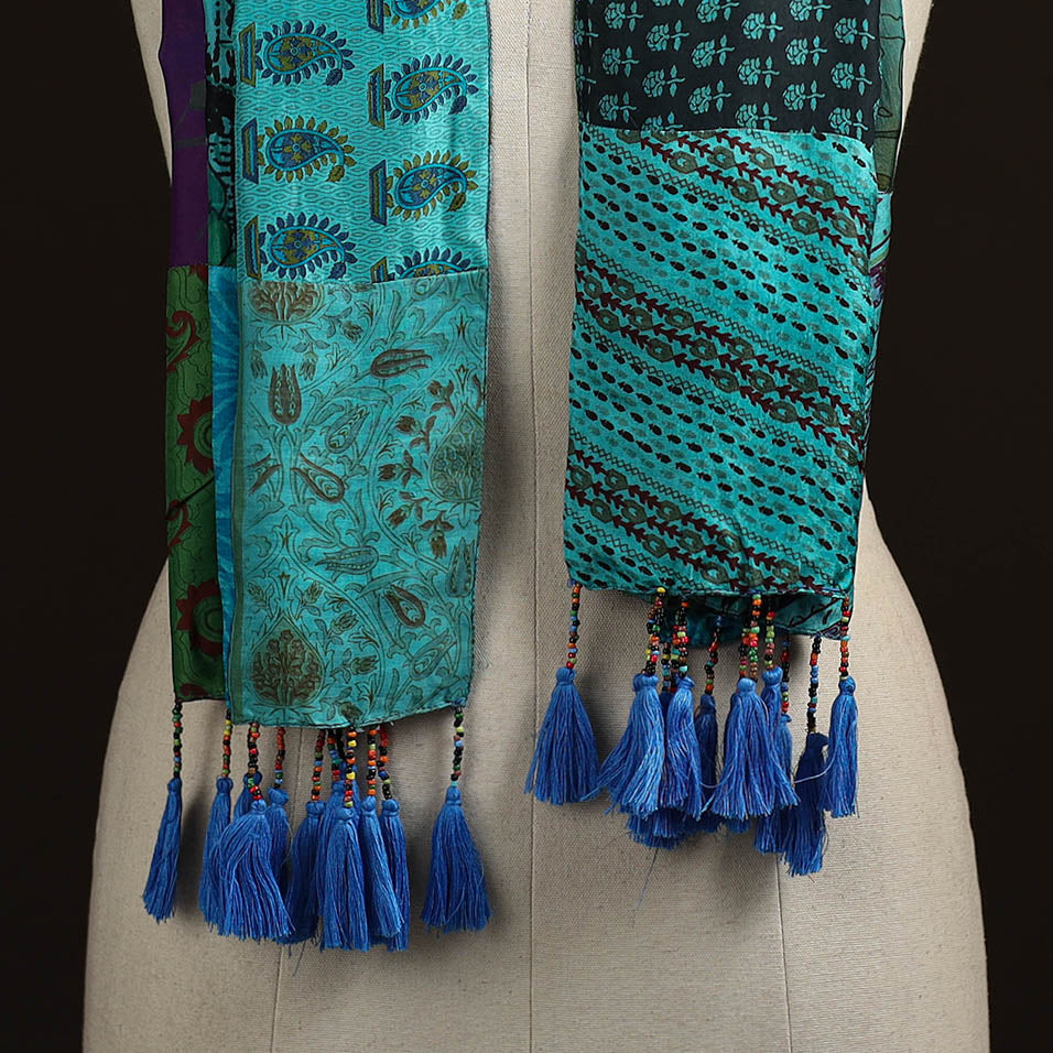 Pure Silk Patchwork Stole with Tassels 12
