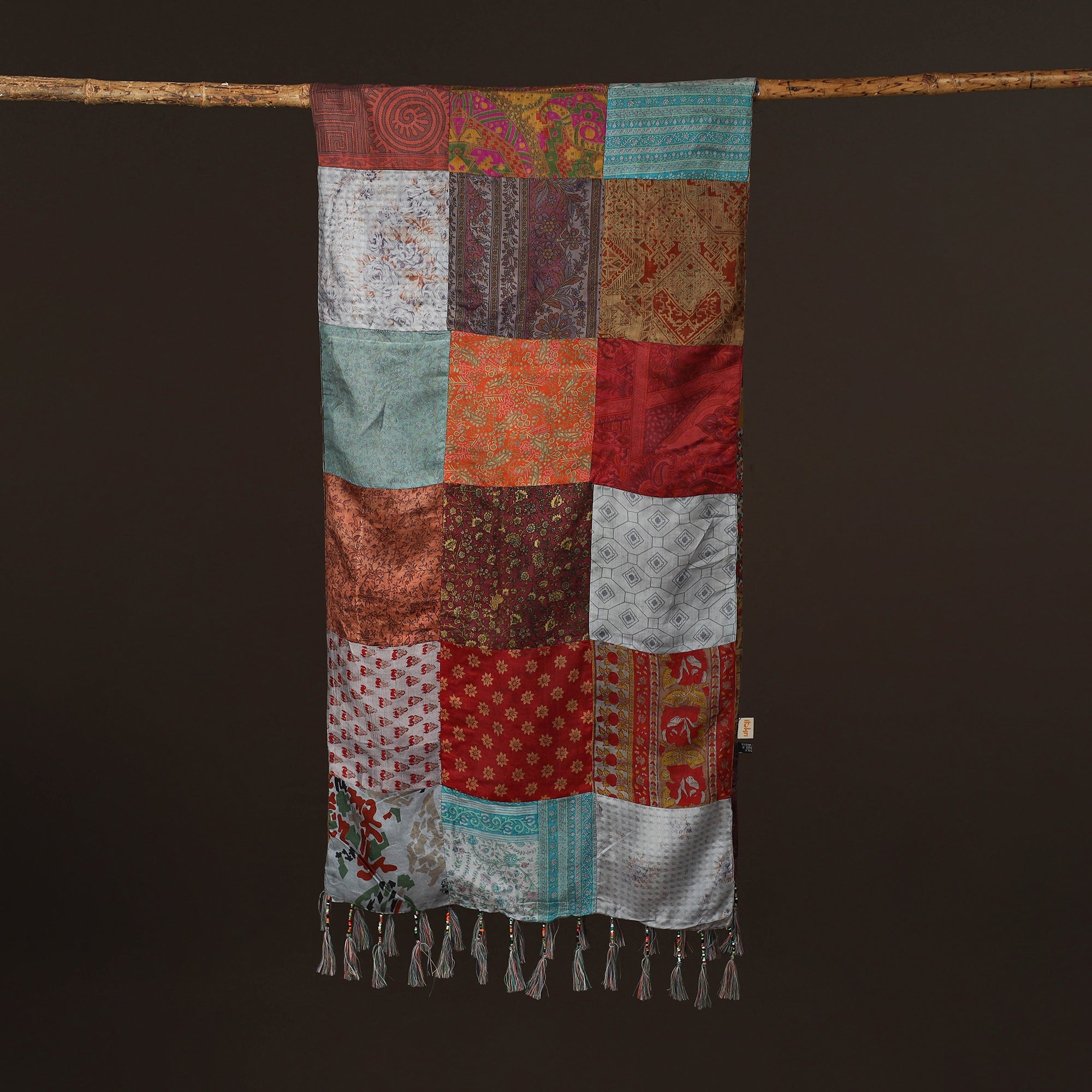 • Pure silk patchwork stole with tassels 15 - handcrafted