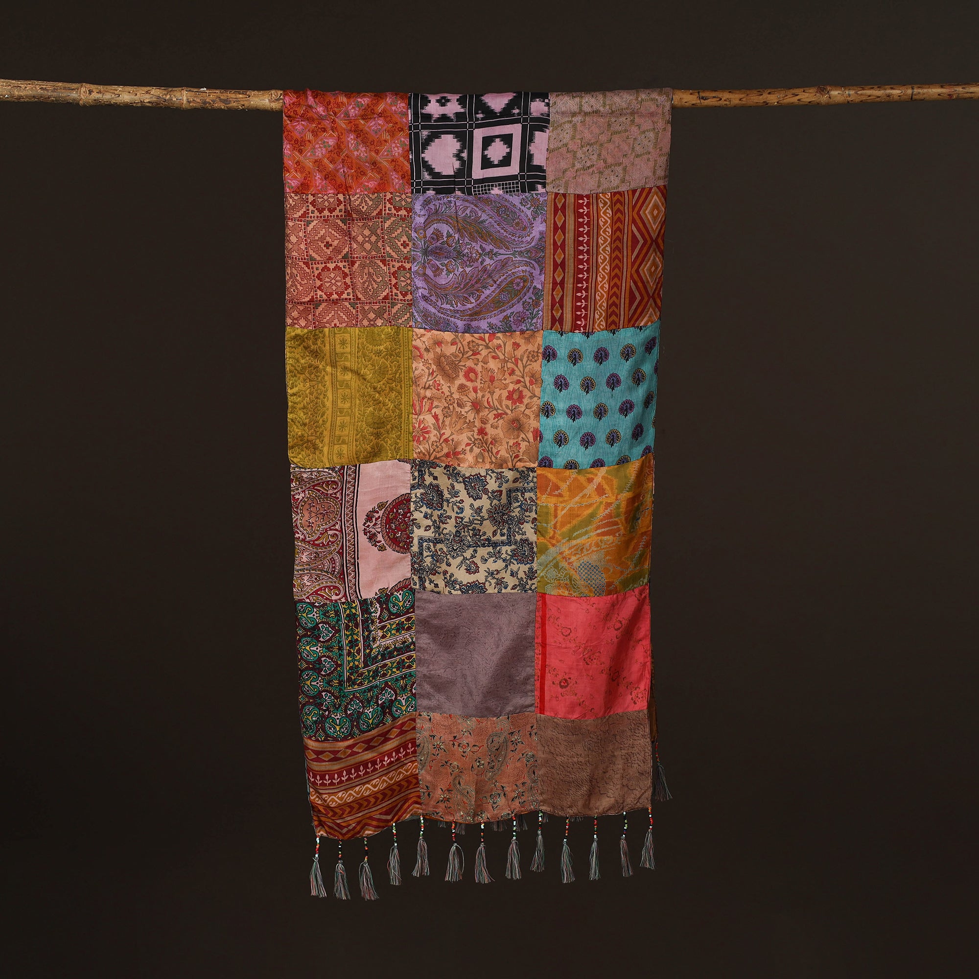 • Pure silk patchwork stole with tassels 16 - handcrafted