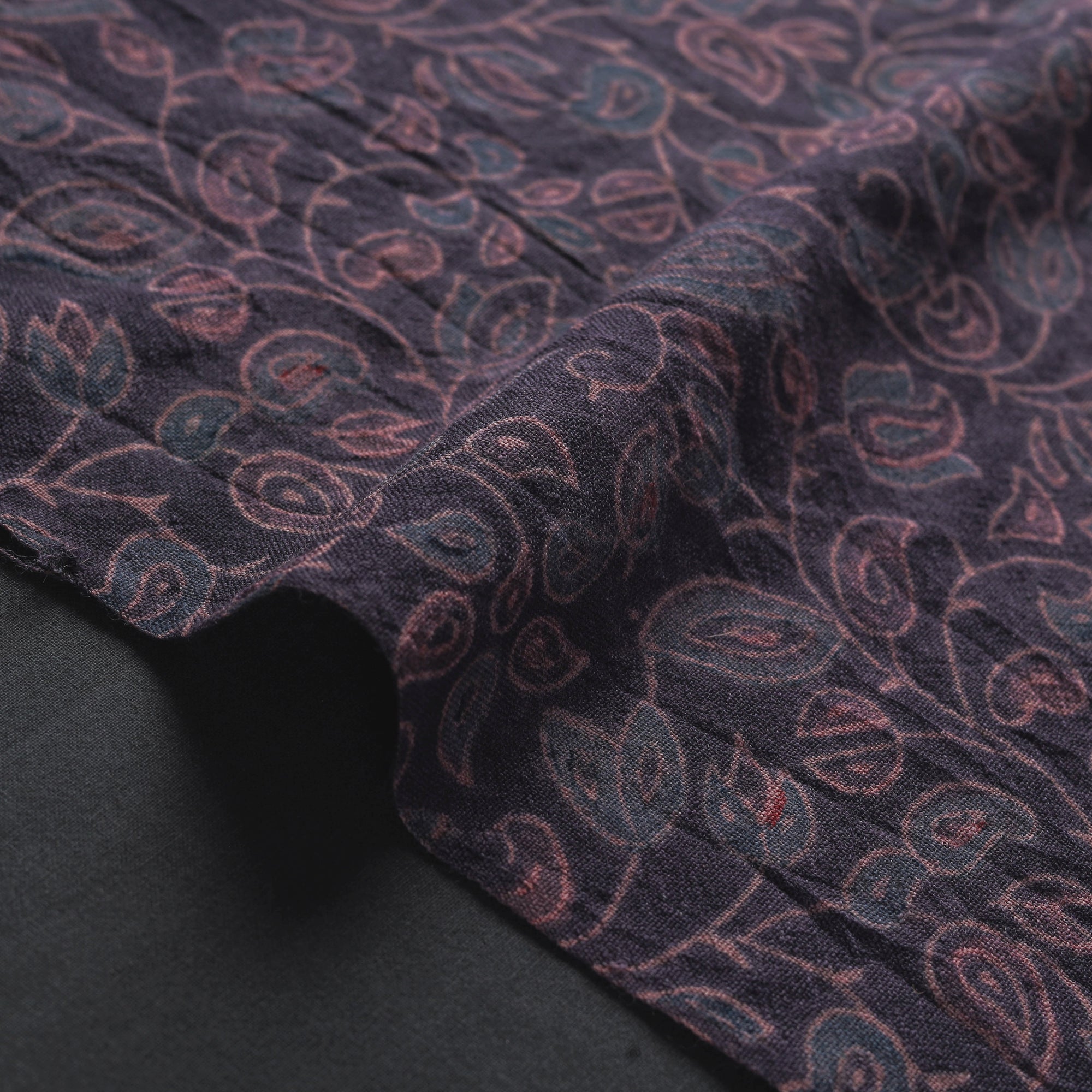 This brown pure wool handloom ajrakh fabric is made using the traditional block printing technique practiced in Gujarat for centuries. The artisans of Kutch use natural dyes to create the intricate patterns. Perfect for designing a stylish outfit, a cozy shawl, or adding an ethnic touch to your home decor, this fabric offers versatility and elegance.