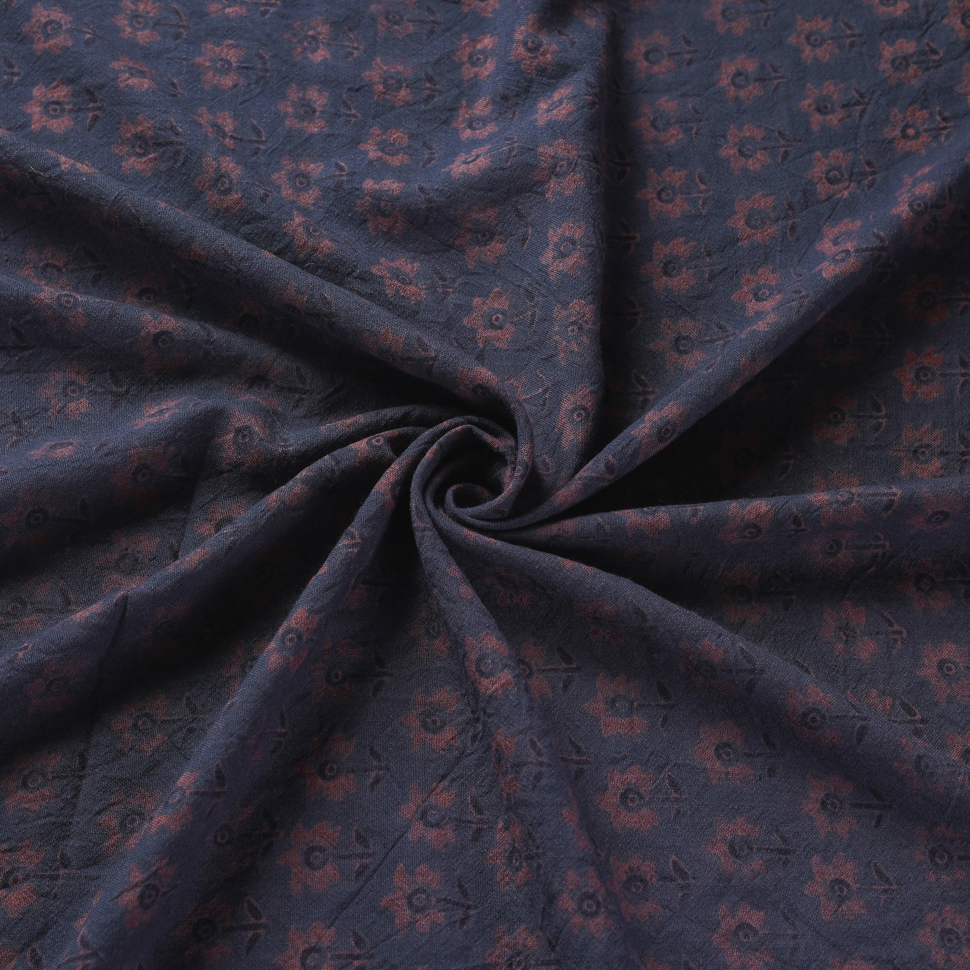 This grey pure wool handloom ajrakh fabric is made using the traditional block printing technique practiced in Gujarat for centuries. The artisans of Kutch use natural dyes to create the intricate patterns. Perfect for designing a stylish outfit, a cozy shawl, or adding an ethnic touch to your home decor, this fabric offers versatility and elegance.
