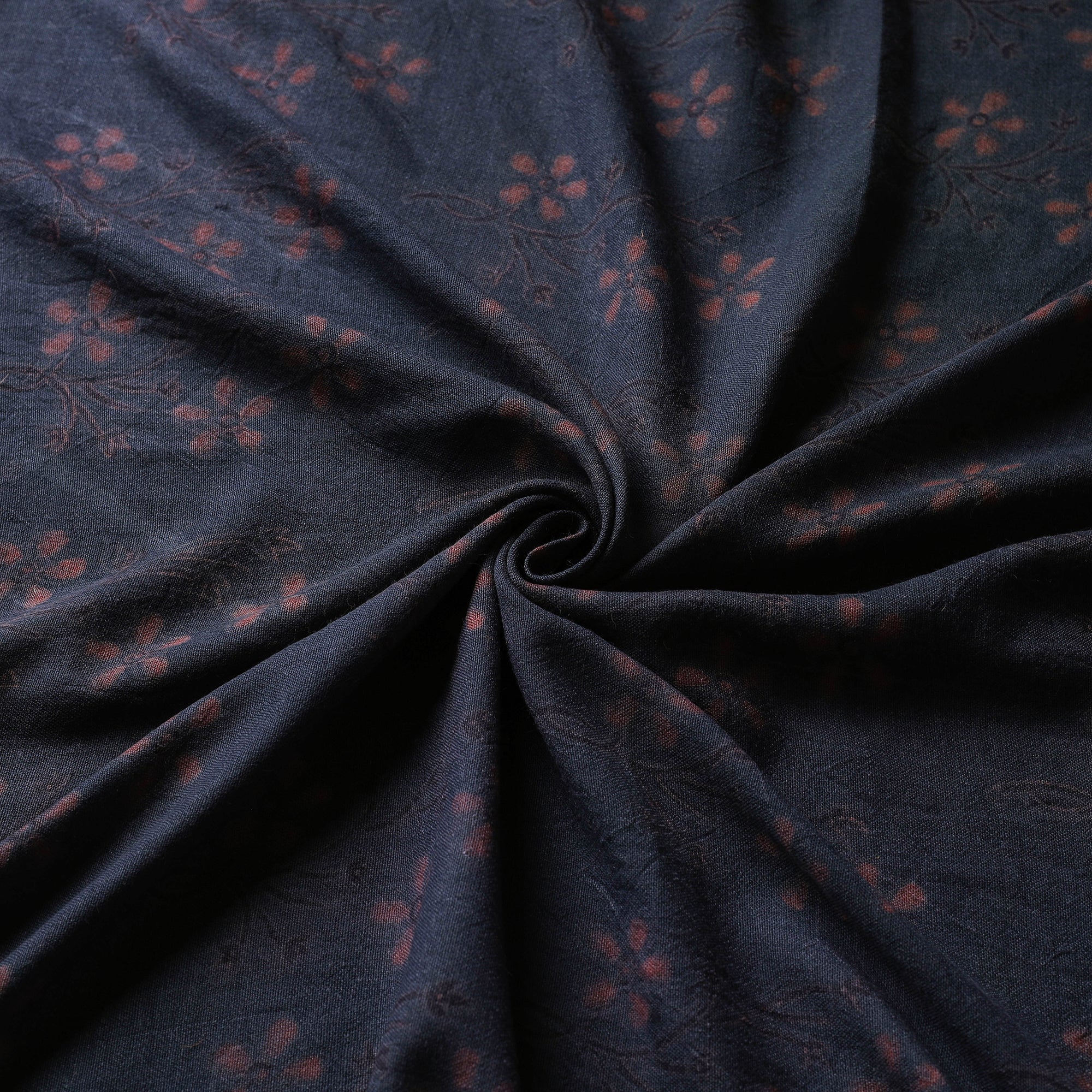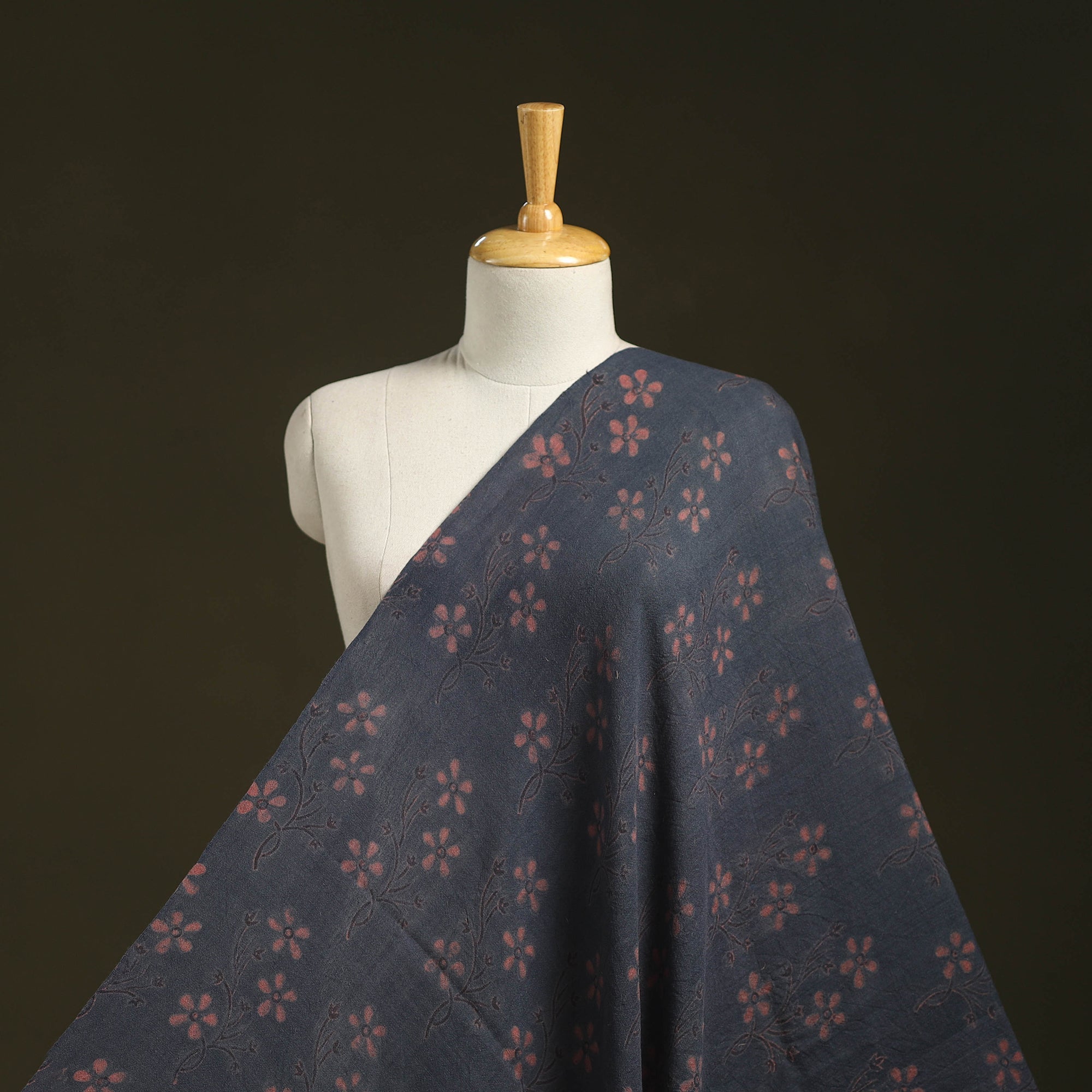 This blue pure wool handloom ajrakh fabric is made using the traditional block printing technique practiced in Gujarat for centuries. The artisans of Kutch use natural dyes to create the intricate patterns. Perfect for designing a stylish outfit, a cozy shawl, or adding an ethnic touch to your home decor, this fabric offers versatility and elegance.