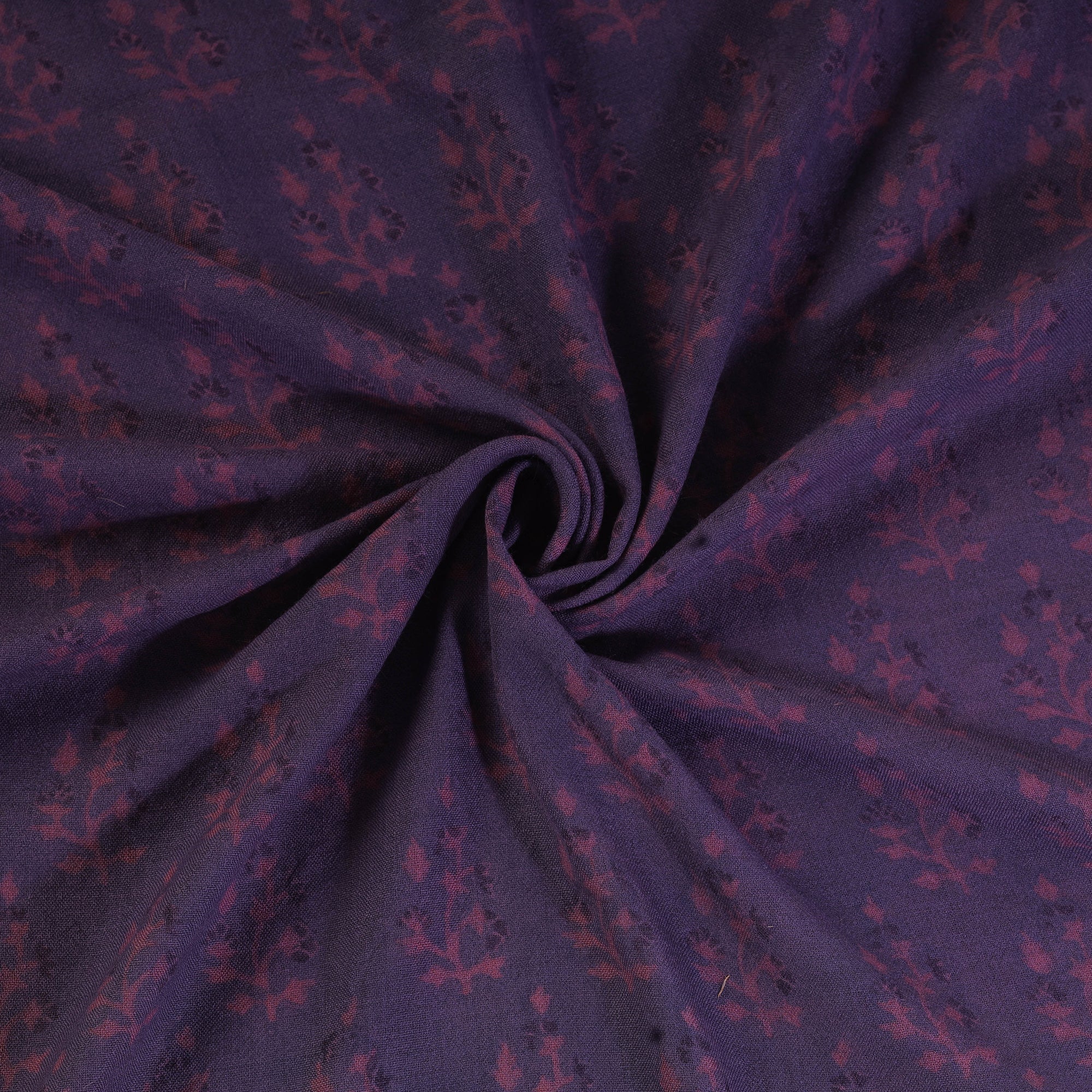 Purple pure wool handloom ajrakh fabric is made using the traditional block printing technique practiced in Gujarat for centuries. The artisans of Kutch use natural dyes to create the intricate patterns. Perfect for designing a winter wear and a cozy shawl, this fabric offers versatility and elegance.