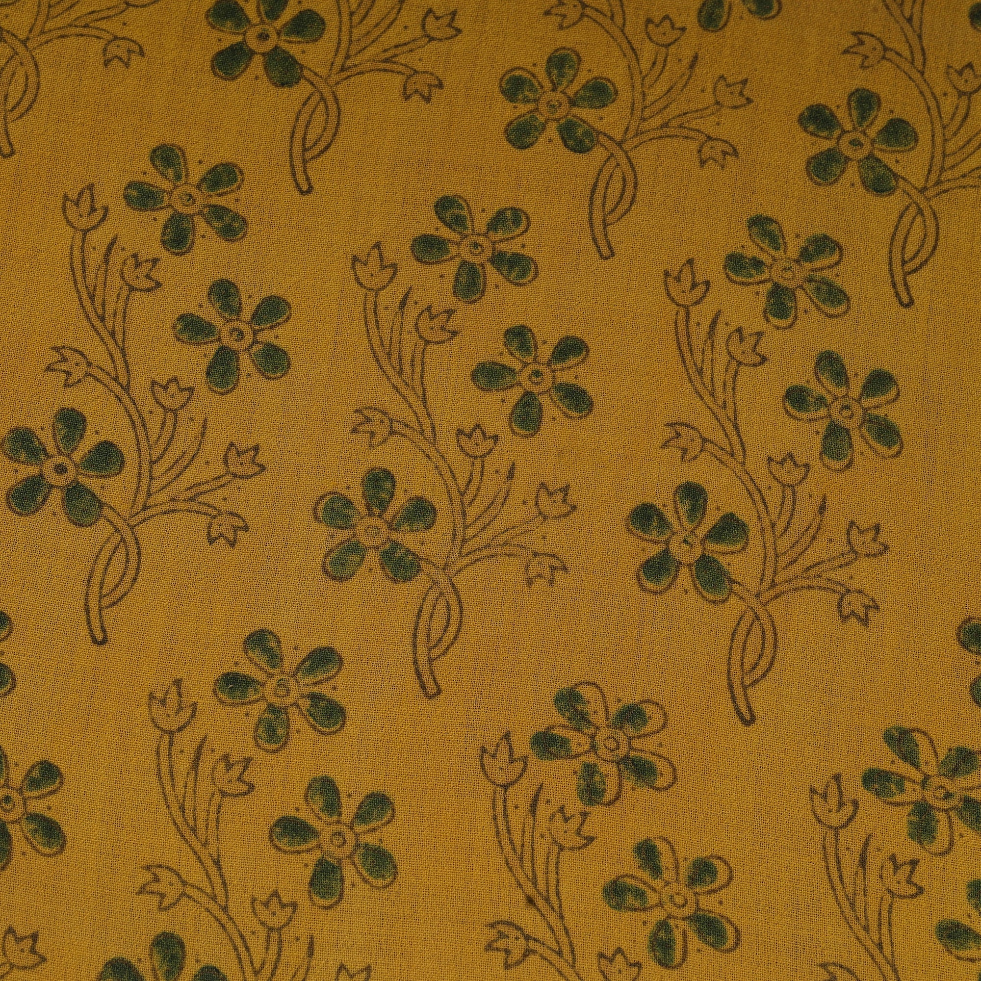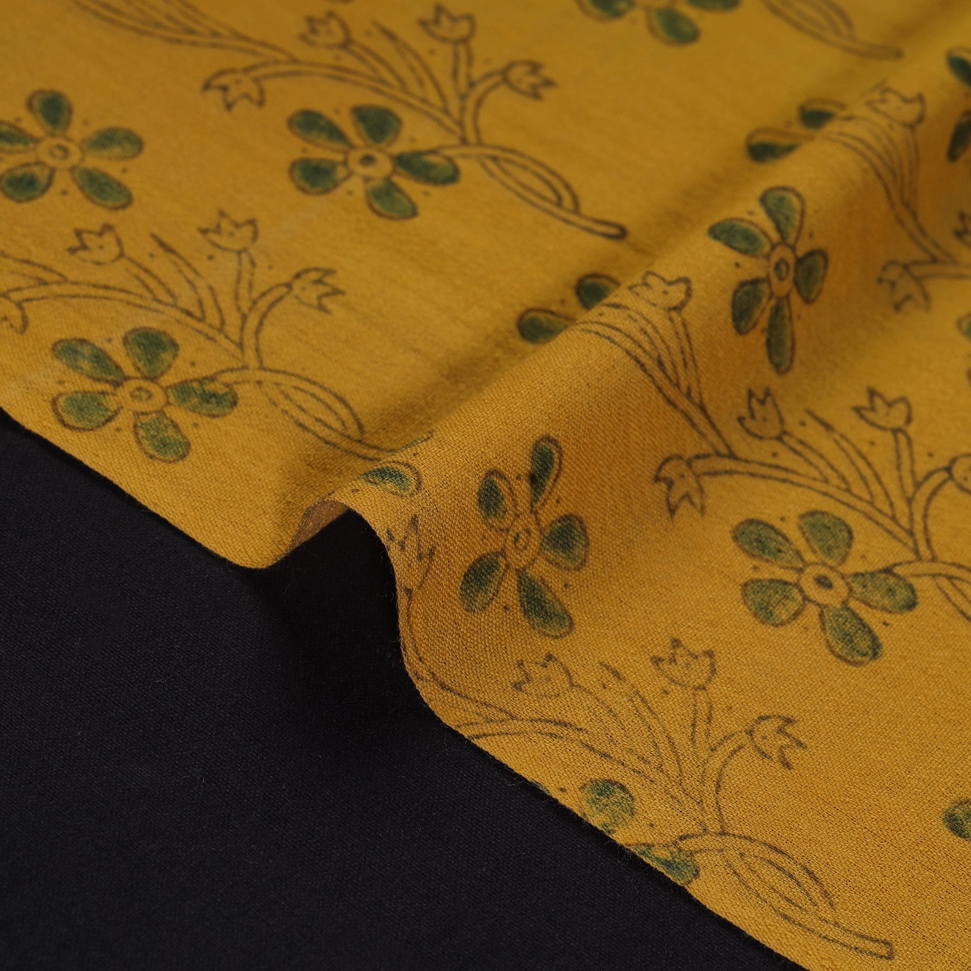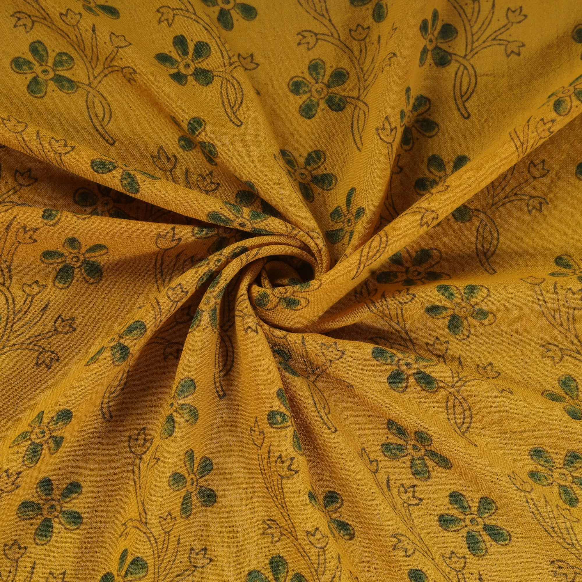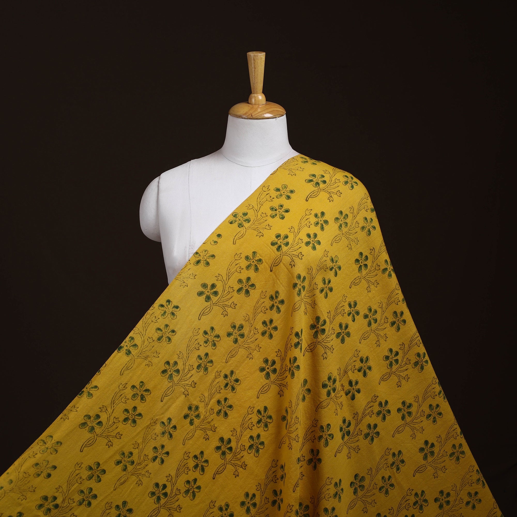 Yellow pure wool handloom ajrakh fabric is made using the traditional block printing technique practiced in Gujarat for centuries. The artisans of Kutch use natural dyes to create the intricate patterns. Perfect for designing a winter wear and a cozy shawl, this fabric offers versatility and elegance.