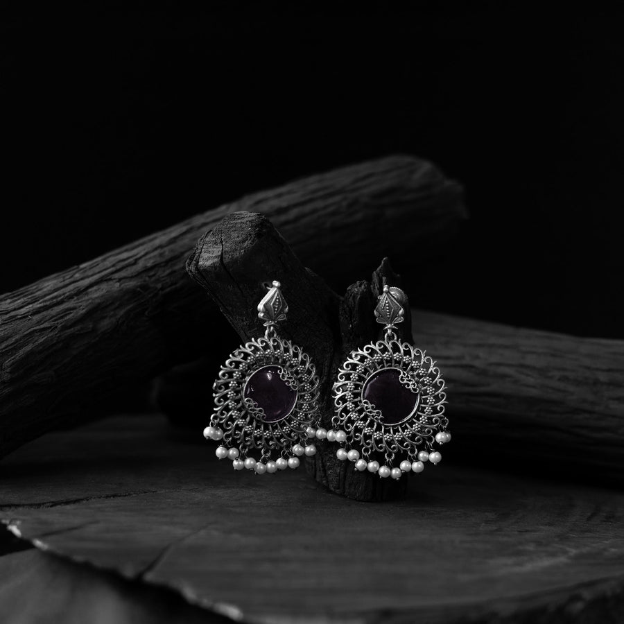 Oxidised handcrafted earrings made with a blend of metal, stones, pearls, beads, and fine detailing. Perfect for festive occasions, weddings, casual outings, office wear, or vacations. Their elegant black and silver tones pair beautifully with everything from casual jeans and flowy dresses to chic office ensembles. A meaningful gift for mother, sister, wife, or girlfriend adding a beautiful touch of tradition to every moment.