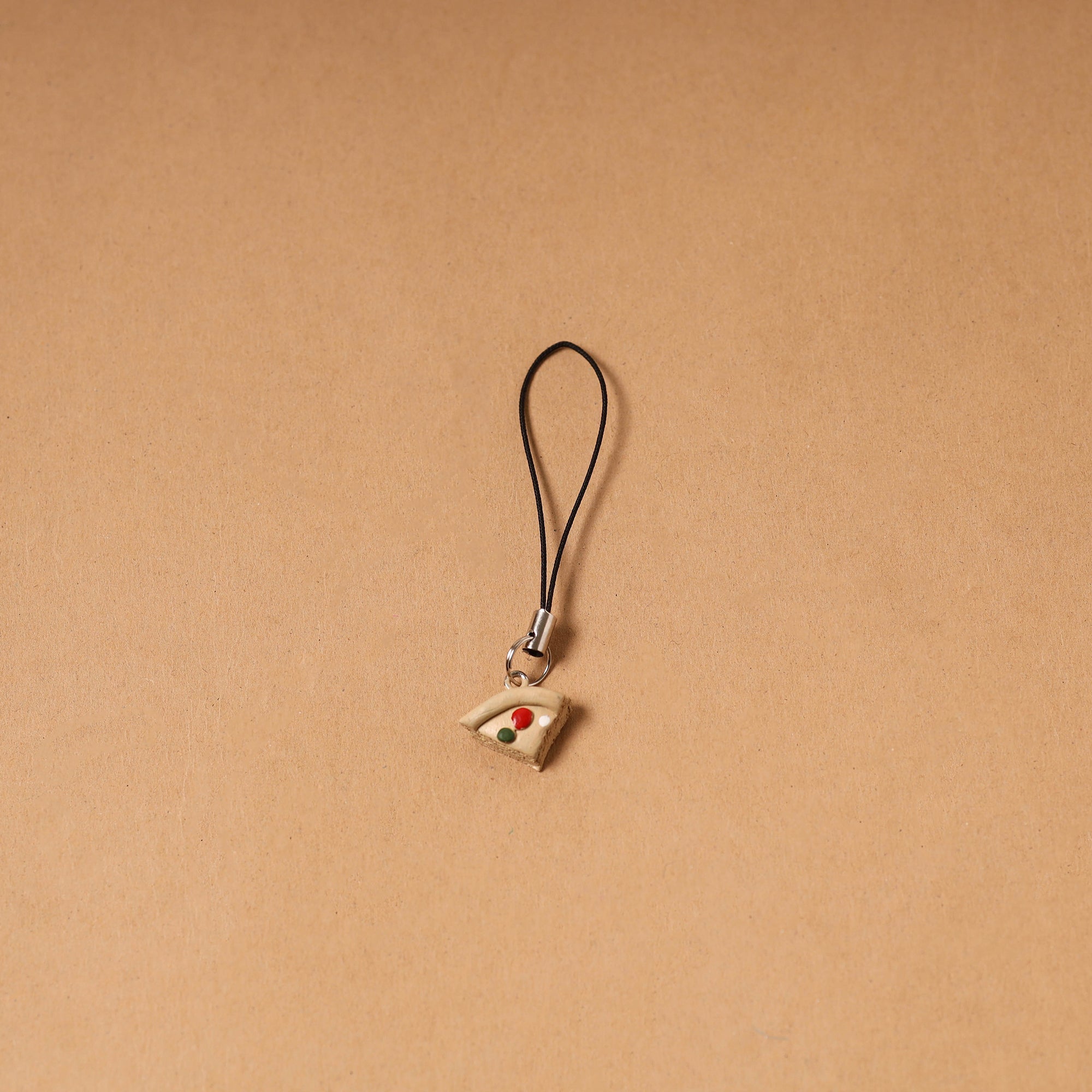 Beige handpainted bag charm / keychain crafted from polymer clay using acrylic colours. Each piece is shaped, painted and finished entirely by hand giving it a unique character. “Quirklets” is inspired by a tiny world of handmade joys, where small clay creations are meant to spark smiles and add a touch of whimsy to your day. Made by artisans in Bangalore this keychain is lightweight and easy to carry, making it a cheerful little accessory for bags, pouches or everyday use.