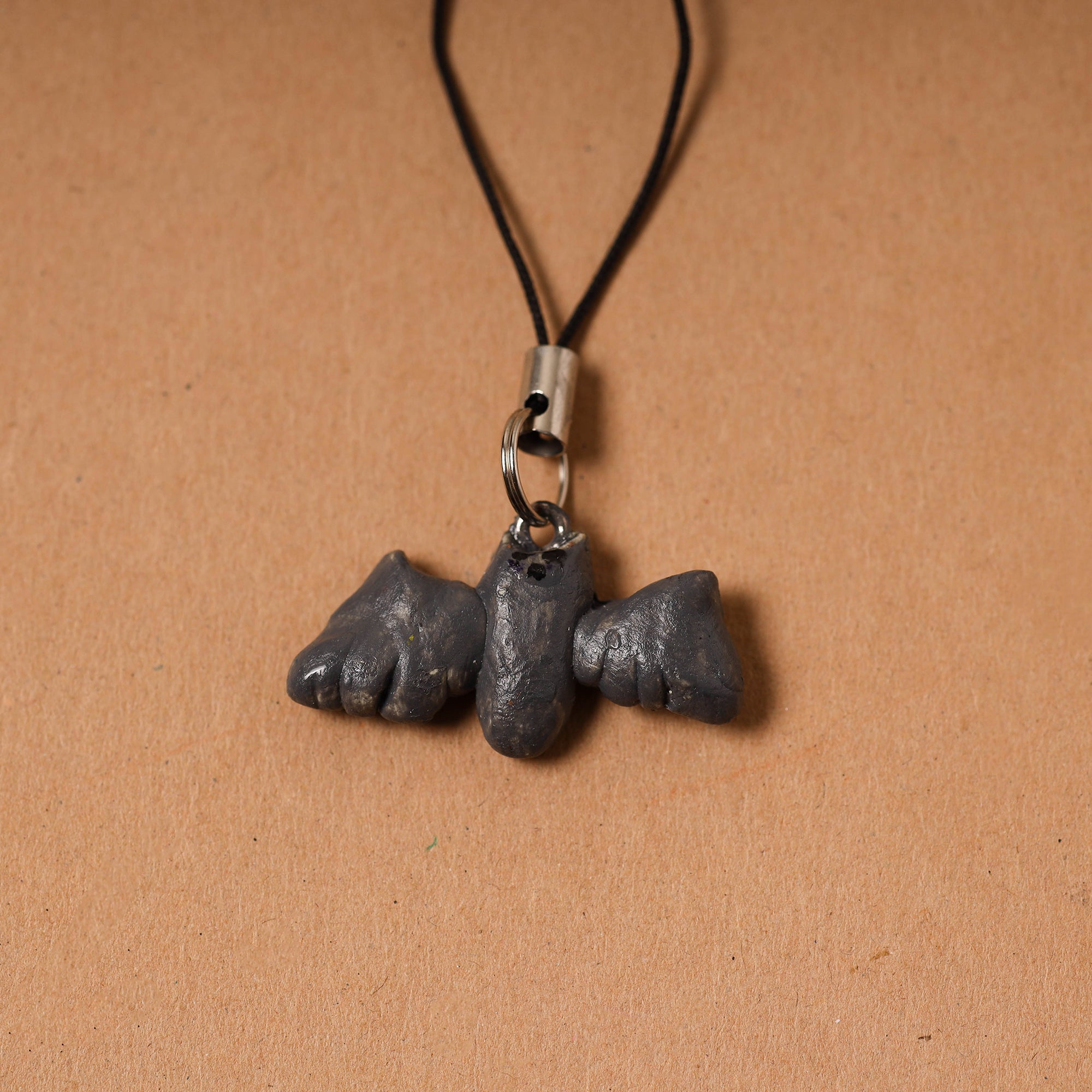 Black handpainted bag charm / keychain crafted from polymer clay using acrylic colours. Each piece is shaped, painted and finished entirely by hand giving it a unique character. “Quirklets” is inspired by a tiny world of handmade joys, where small clay creations are meant to spark smiles and add a touch of whimsy to your day. Made by artisans in Bangalore this keychain is lightweight and easy to carry, making it a cheerful little accessory for bags, pouches or everyday use.