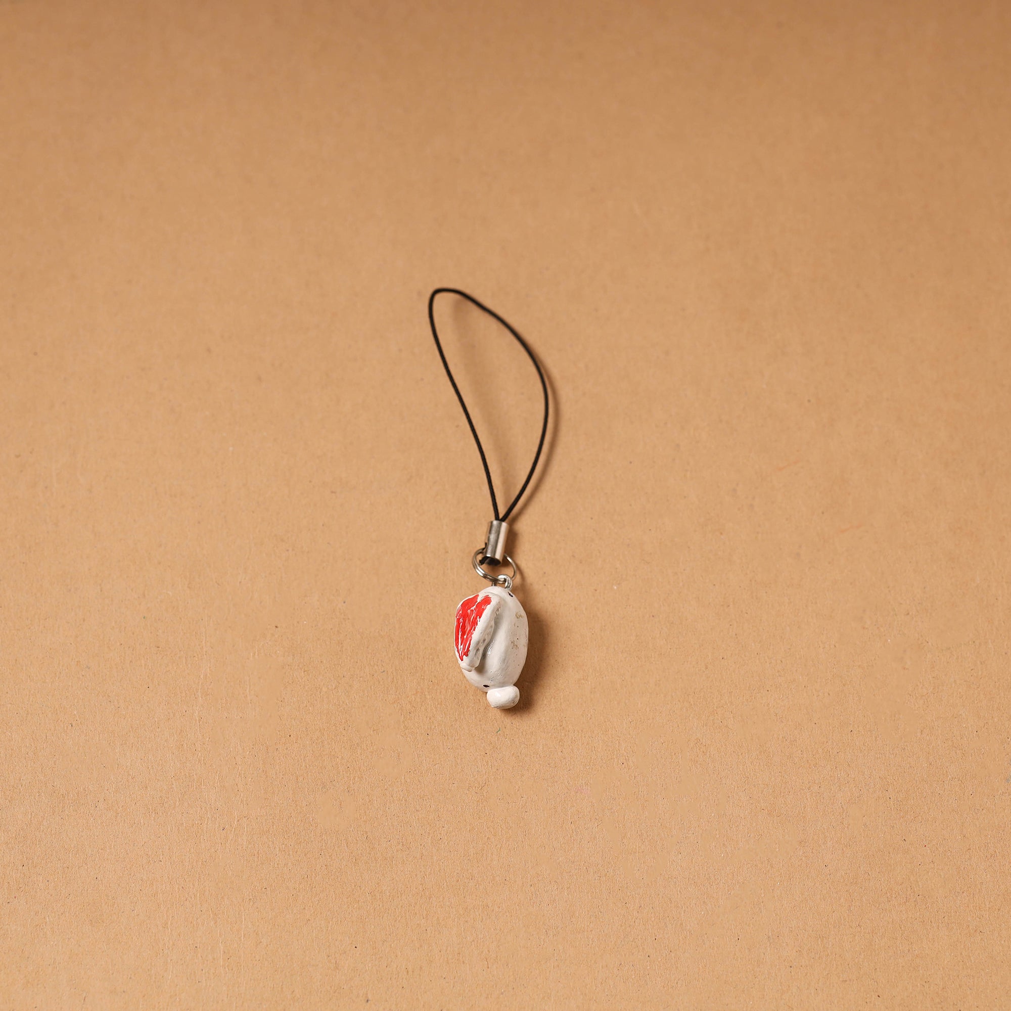 White handpainted bag charm / keychain crafted from polymer clay using acrylic colours. Each piece is shaped, painted and finished entirely by hand giving it a unique character. “Quirklets” is inspired by a tiny world of handmade joys, where small clay creations are meant to spark smiles and add a touch of whimsy to your day. Made by artisans in Bangalore this keychain is lightweight and easy to carry, making it a cheerful little accessory for bags, pouches or everyday use.