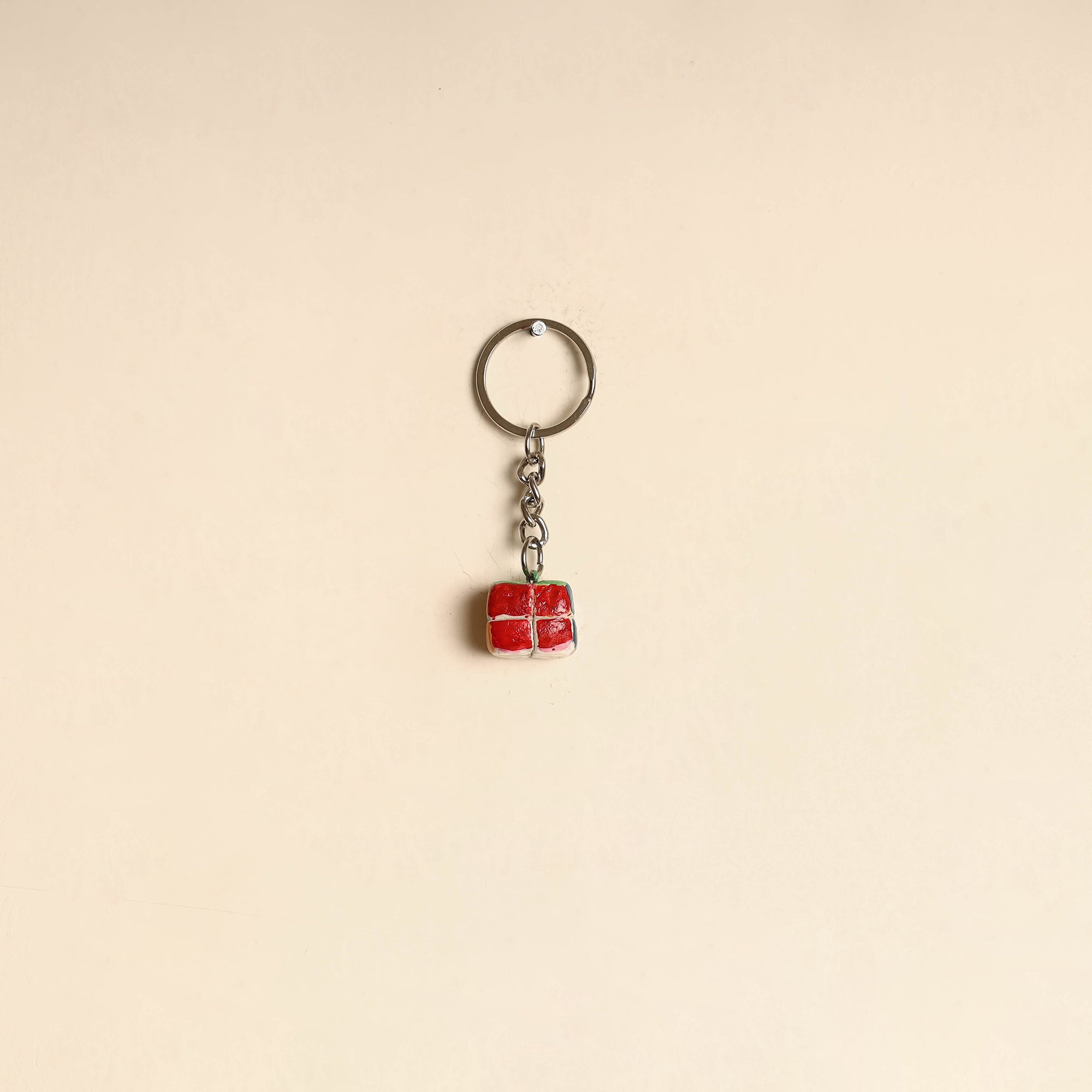 Handpainted keychain crafted from polymer clay using acrylic colours. Each piece is shaped, painted, and finished entirely by hand, giving it a unique character. “Quirklets” is inspired by a tiny world of handmade joys, where small clay creations are meant to spark smiles and add a touch of whimsy to your day. Made by artisans in Bangalore, this keychain is lightweight and easy to carry, making it a cheerful little accessory for bags, pouches or everyday use.