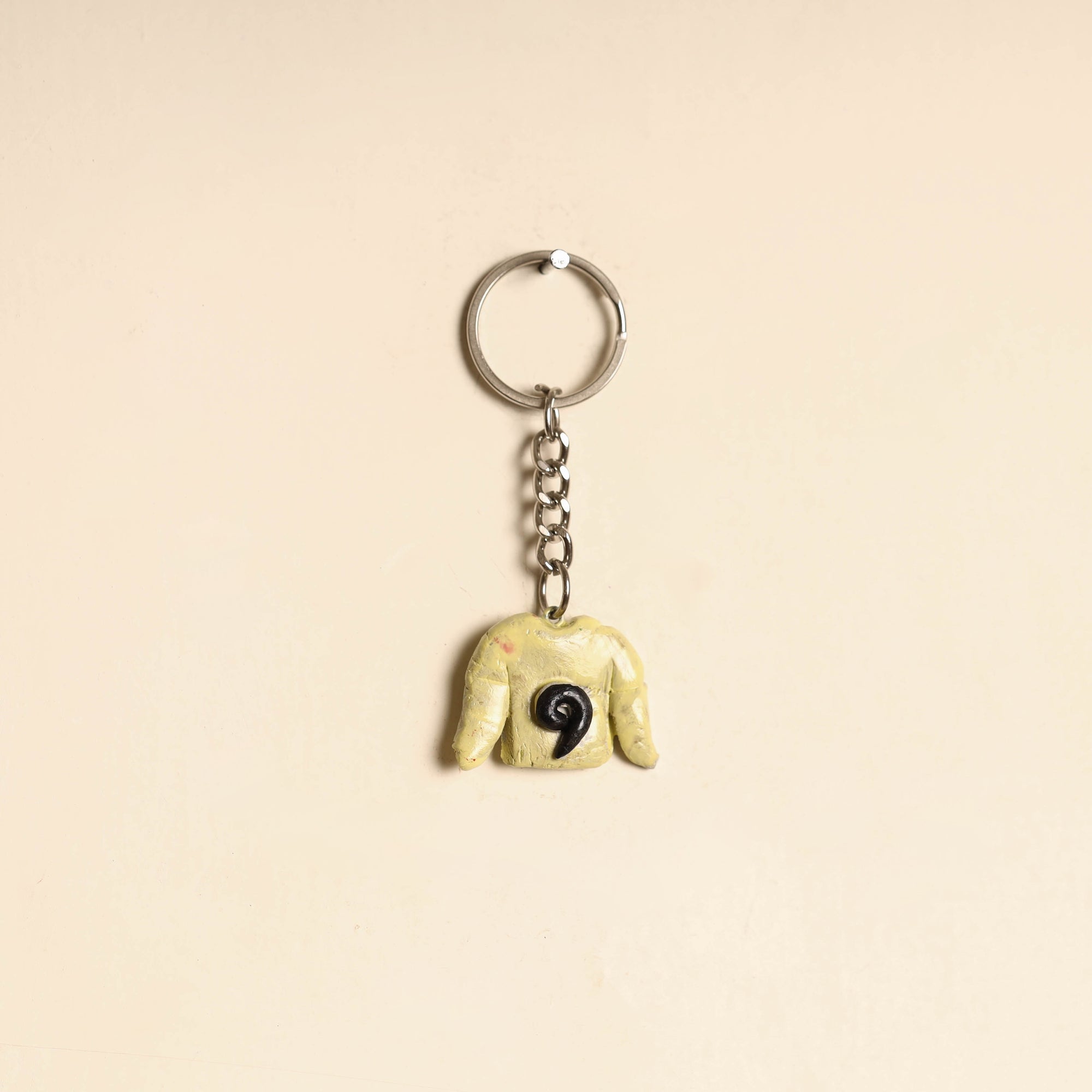 Yellow handpainted keychain crafted from polymer clay using acrylic colours. Each piece is shaped, painted, and finished entirely by hand, giving it a unique character. “Quirklets” is inspired by a tiny world of handmade joys, where small clay creations are meant to spark smiles and add a touch of whimsy to your day. Made by artisans in Bangalore, this keychain is lightweight and easy to carry, making it a cheerful little accessory for bags, pouches or everyday use.