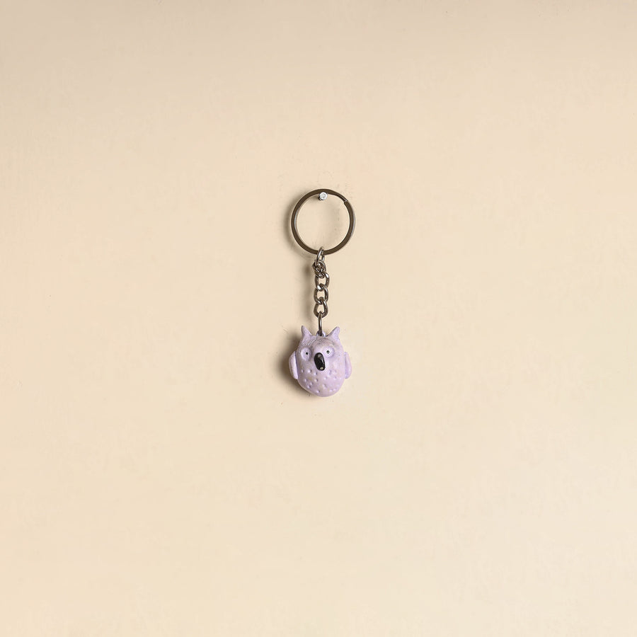 Purple handpainted keychain crafted from polymer clay using acrylic colours. Each piece is shaped, painted, and finished entirely by hand, giving it a unique character. “Quirklets” is inspired by a tiny world of handmade joys, where small clay creations are meant to spark smiles and add a touch of whimsy to your day. Made by artisans in Bangalore, this keychain is lightweight and easy to carry, making it a cheerful little accessory for bags, pouches or everyday use.