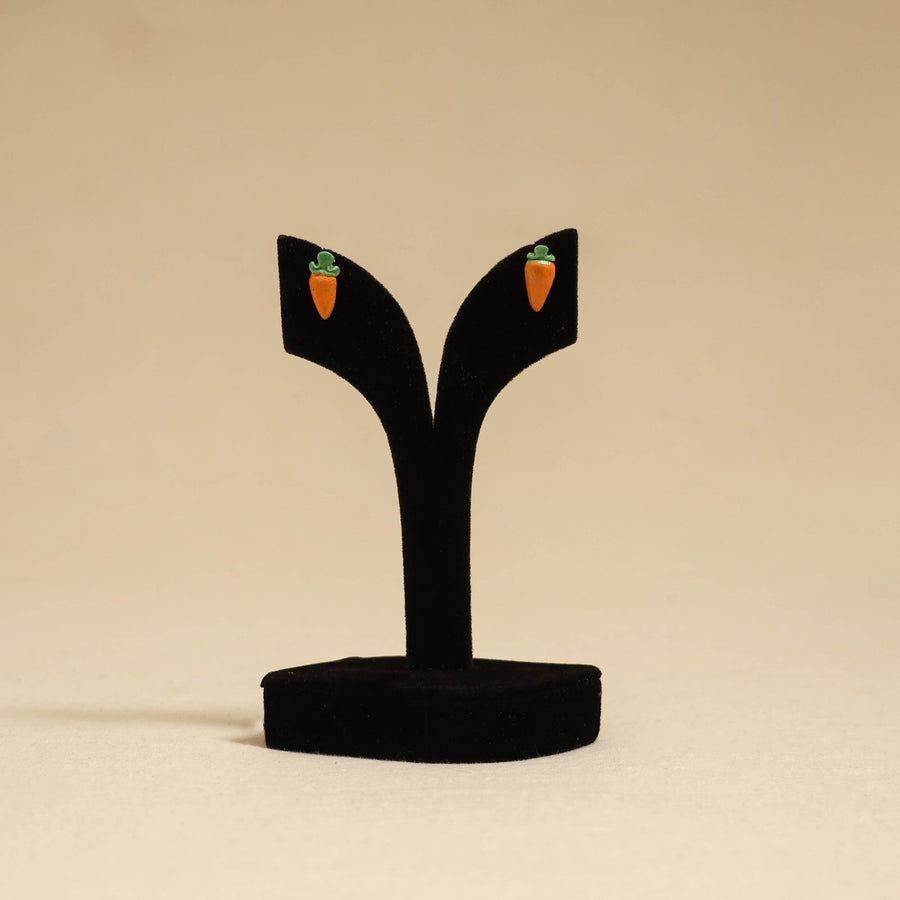 Orange handpainted stud earrings is crafted from polymer clay and using acrylic colours. Every piece is shaped, painted and finished entirely by hand, giving it a distinct character. The idea behind “Quirklets” comes from a tiny world of handmade joys, where little clay creations are meant to spark smiles and add a touch of whimsy to your day. Made by artisans in Bangalore, this earrings is lightweight and easy to pair with everyday outfits, making it a cheerful addition to your accessories collection.