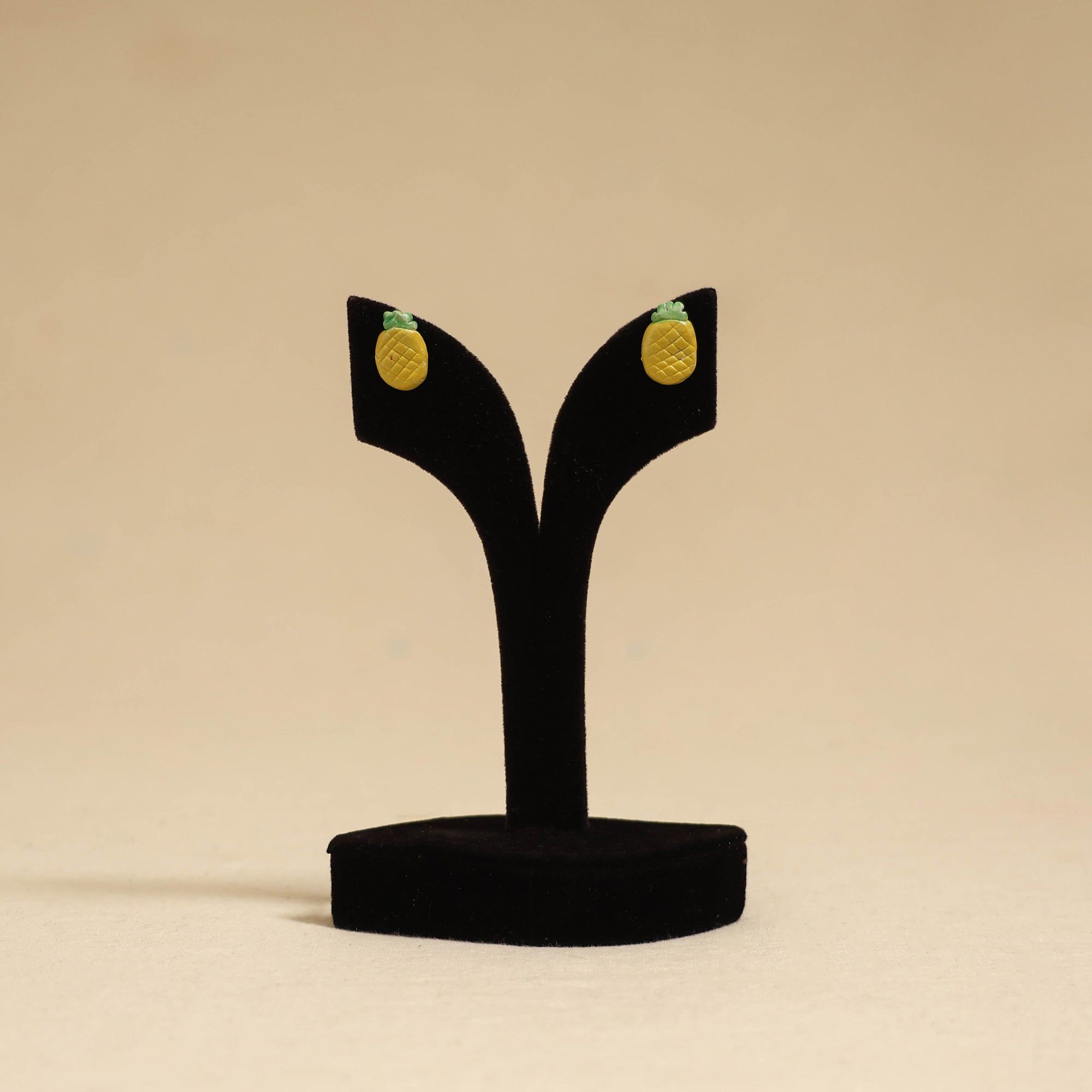 Yellow handpainted stud earrings is crafted from polymer clay and using acrylic colours. Every piece is shaped, painted and finished entirely by hand, giving it a distinct character. The idea behind “Quirklets” comes from a tiny world of handmade joys, where little clay creations are meant to spark smiles and add a touch of whimsy to your day. Made by artisans in Bangalore, this earrings is lightweight and easy to pair with everyday outfits, making it a cheerful addition to your accessories collection.