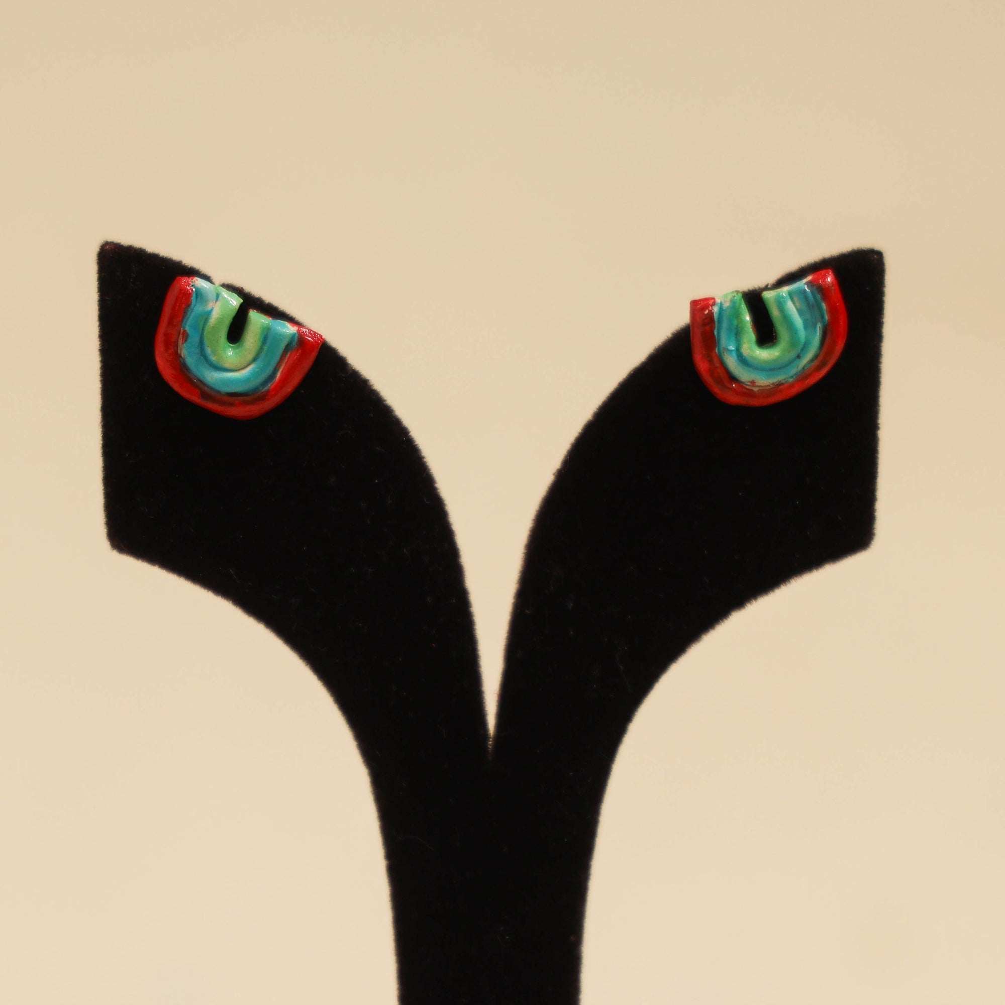 Handpainted stud earrings is crafted from polymer clay and using acrylic colours. Every piece is shaped, painted and finished entirely by hand, giving it a distinct character. The idea behind “Quirklets” comes from a tiny world of handmade joys, where little clay creations are meant to spark smiles and add a touch of whimsy to your day. Made by artisans in Bangalore, this earrings is lightweight and easy to pair with everyday outfits, making it a cheerful addition to your accessories collection.