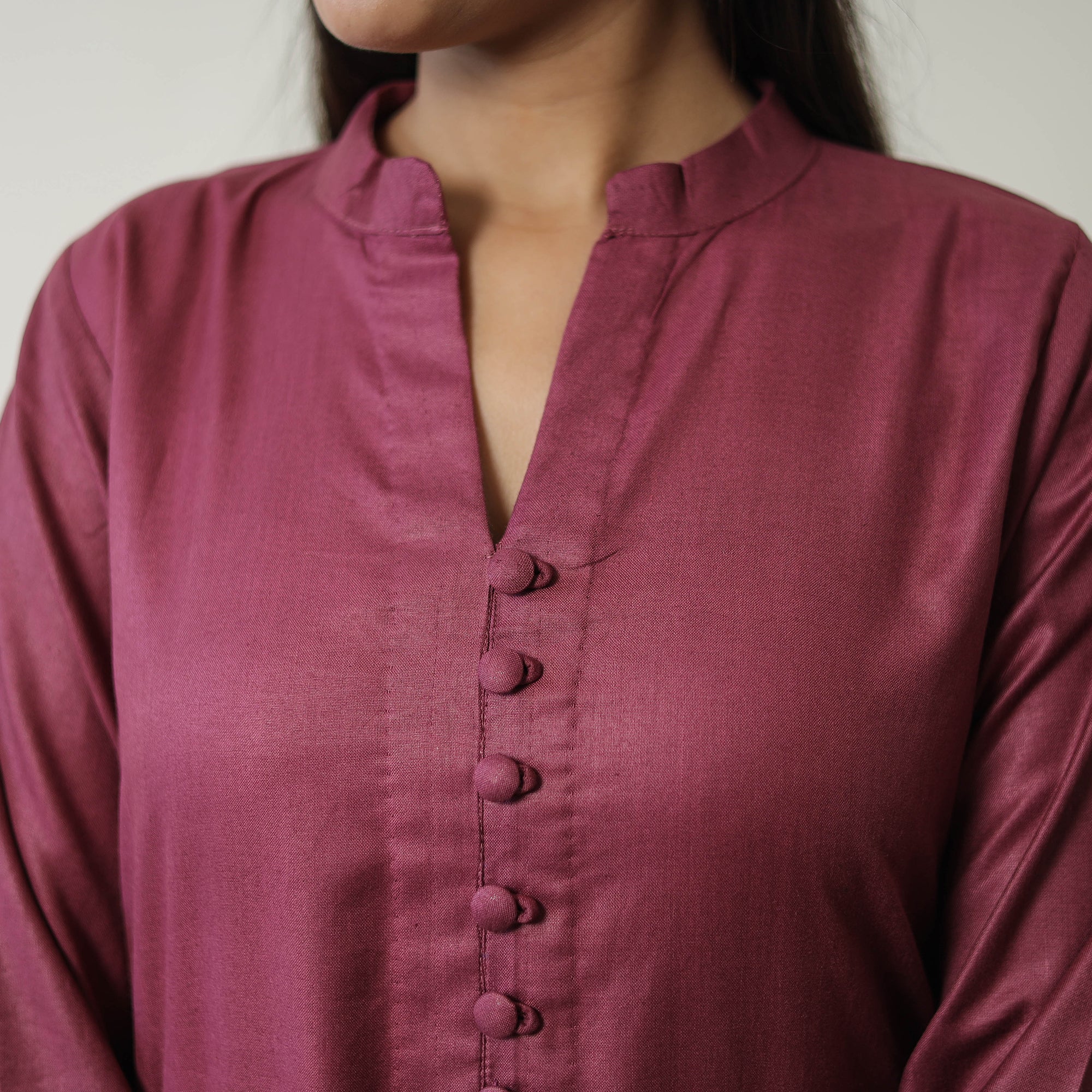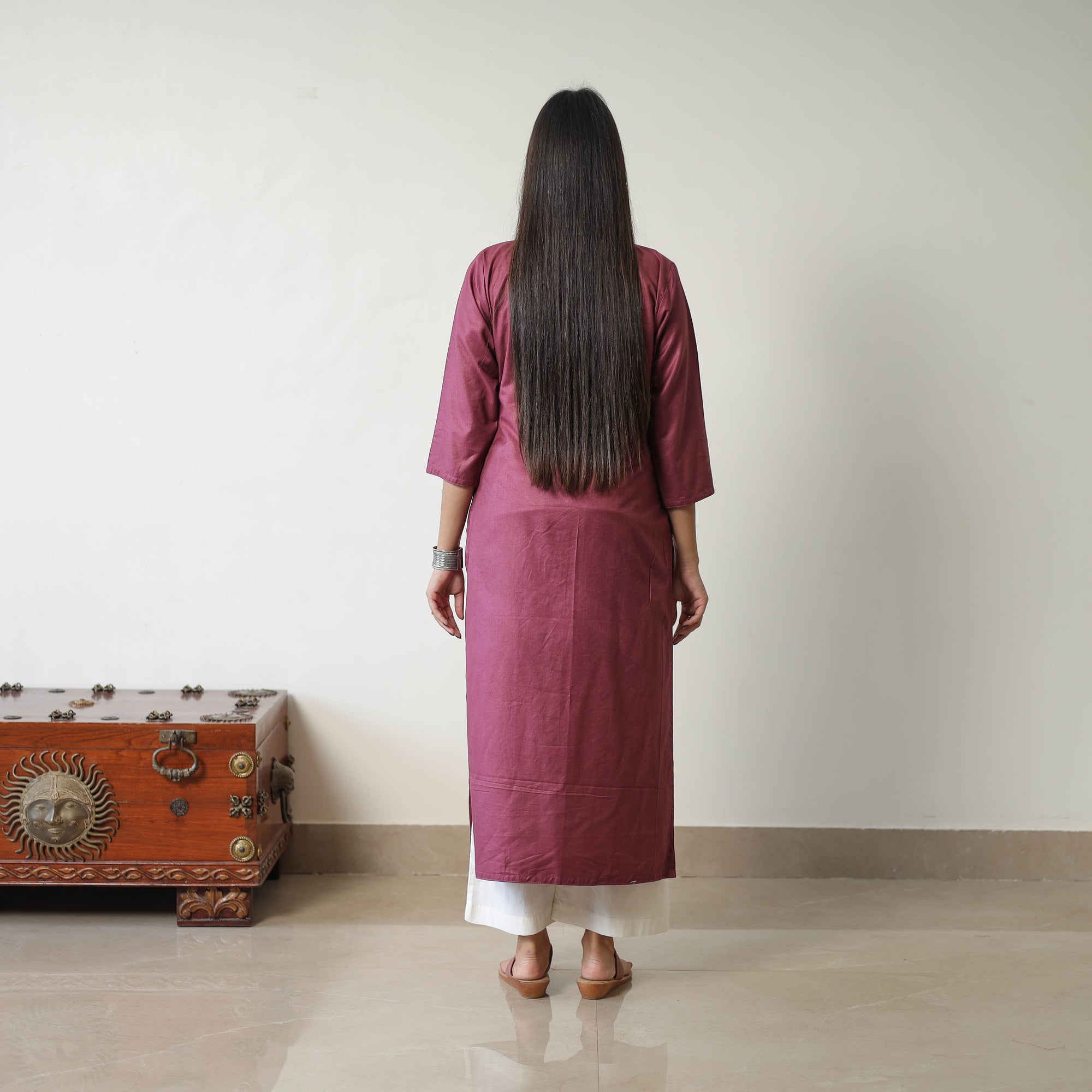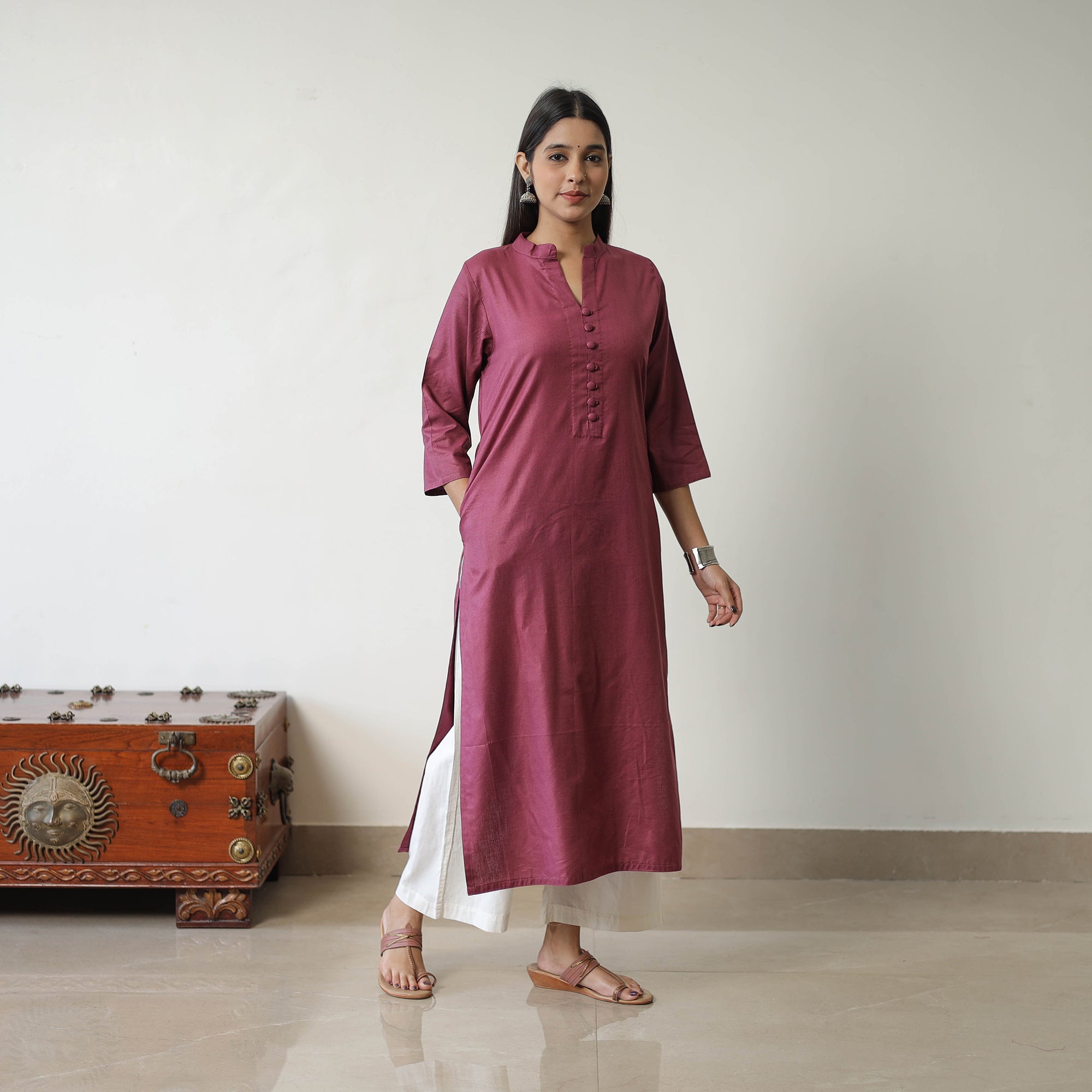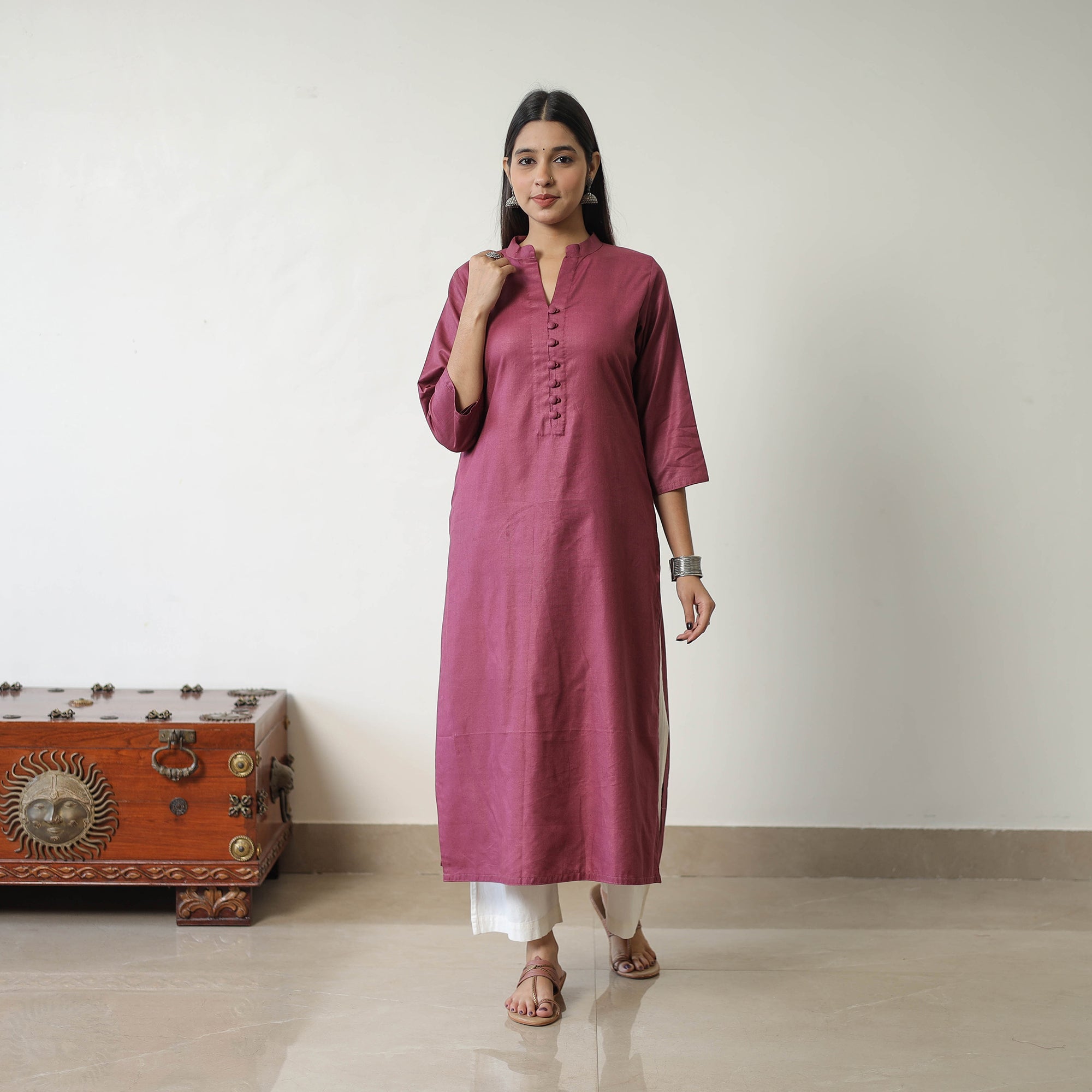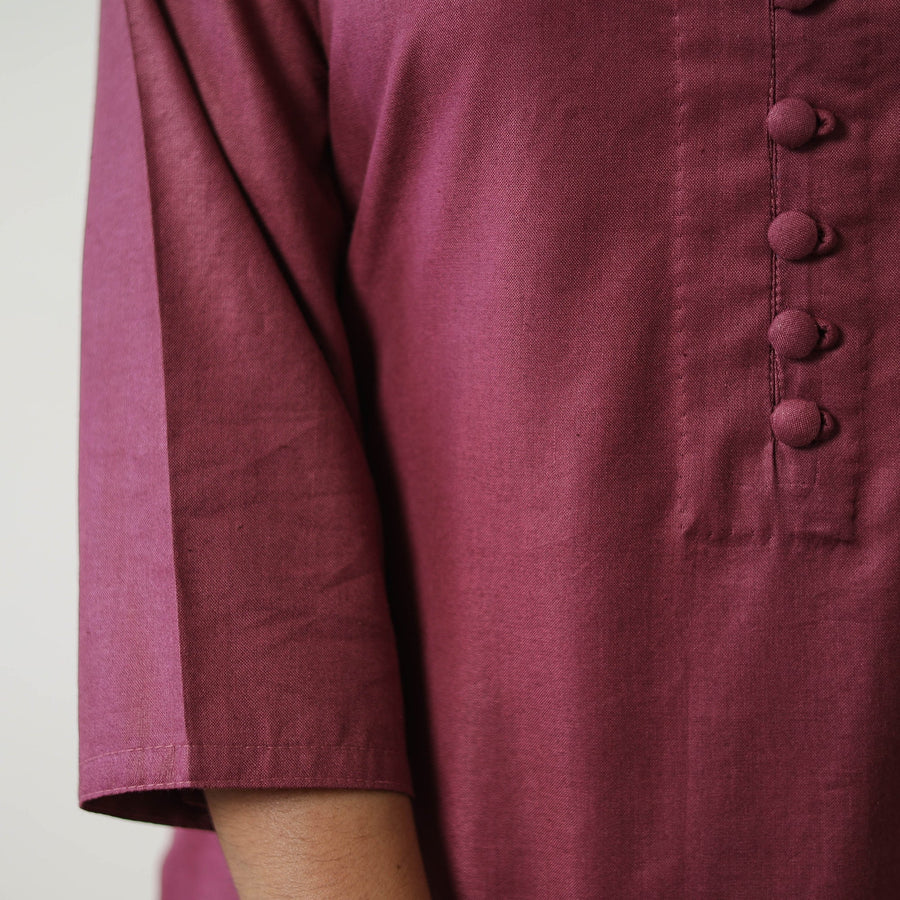 Look effortlessly chic in this purple linen cotton plain kurta, designed for comfort and style. Made from a blend of linen and cotton, this kurta ensures all-day comfort. Featuring a side pocket, this kurta is as functional as it is stylish. Perfect for daily wear and festive gatherings.