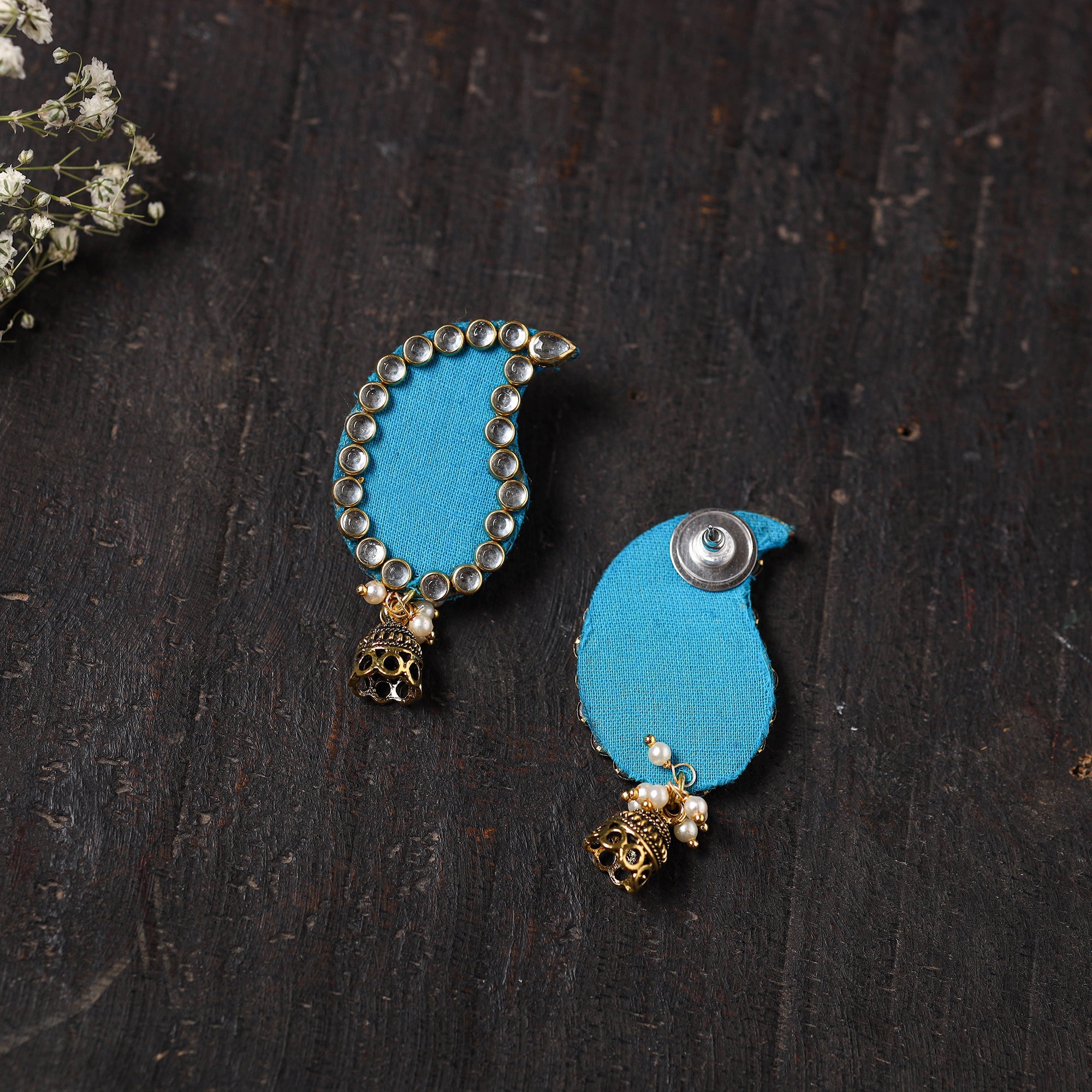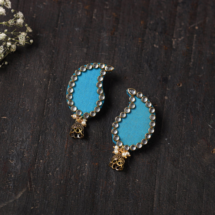 Add a touch of elegance to your look with these blue handmade fabart earrings for women, featuring intricate stonework, beads, and german silver. Designed for both style and comfort, these lightweight earrings are perfect for festive occasions or casual wear.