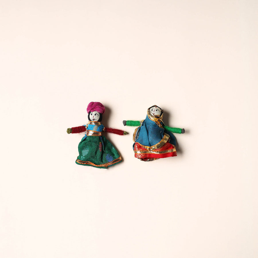 Celebrate the rich artistry of Rajasthan with this rajasthani puppet couple magnet Set (Set of 2), handcrafted by skilled artisans. Made from vibrant fabric and adorned with intricate gota patti work, these magnets add a cultural touch to your home or workspace. Whether placed on your fridge, workstation, or magnetic board, they bring a unique blend of tradition and charm, making them a delightful addition to any space.