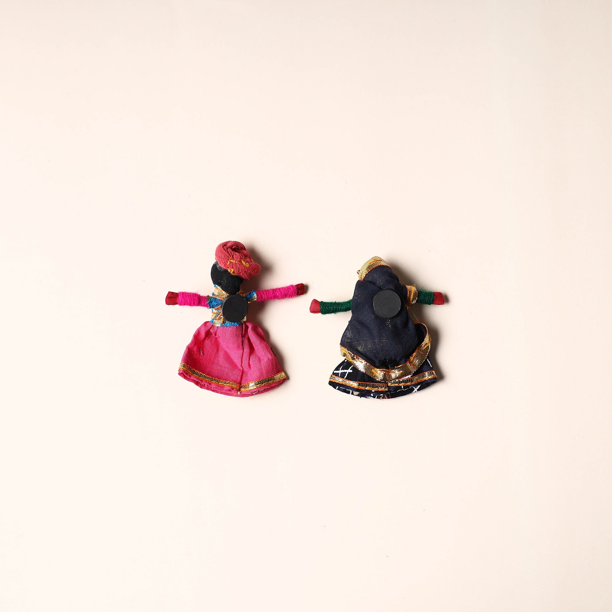 Celebrate the rich artistry of Rajasthan with this rajasthani puppet couple magnet Set (Set of 2), handcrafted by skilled artisans. Made from vibrant fabric and adorned with intricate gota patti work, these magnets add a cultural touch to your home or workspace. Whether placed on your fridge, workstation, or magnetic board, they bring a unique blend of tradition and charm, making them a delightful addition to any space.