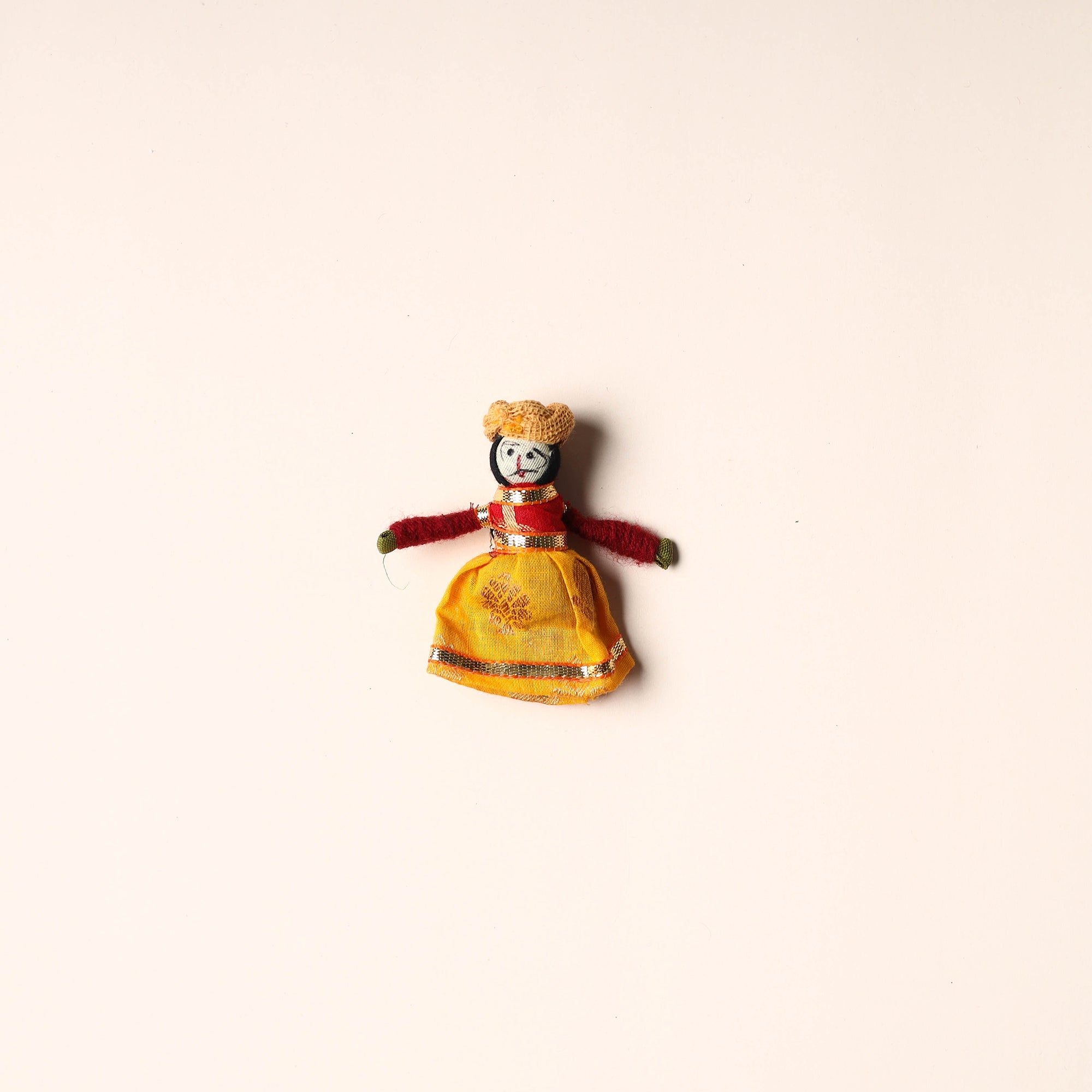 Celebrate the rich artistry of Rajasthan with this rajasthani puppet couple magnet Set (Set of 2), handcrafted by skilled artisans. Made from vibrant fabric and adorned with intricate gota patti work, these magnets add a cultural touch to your home or workspace. Whether placed on your fridge, workstation, or magnetic board, they bring a unique blend of tradition and charm, making them a delightful addition to any space.